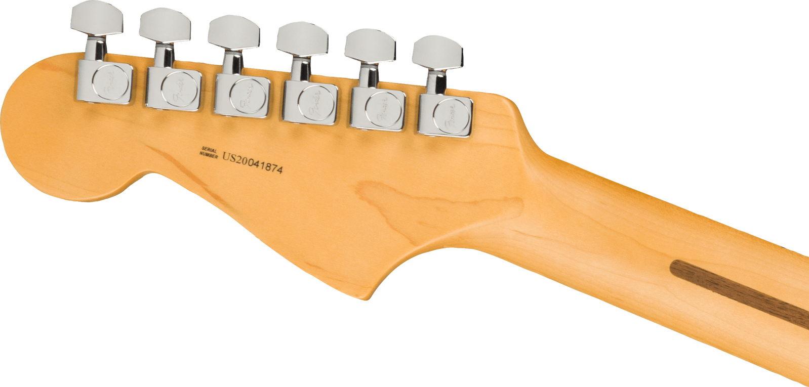 The American Professional II Jazzmaster also features a rhythm circuit which, after flipping the switch, engages both pickups in series, resulting in a much thicker tone and greater output - this circuit is even controlled by independent tone and volume roller pots. The American Professional II Jazzmaster's Panorama Tremolo system makes for a much wider range of vibrato than traditionally available to Jazzmaster players - in addition to the classic warble you expect from a Jazzmaster, the Panorama system allows players to achieve deep Strat-like dives.