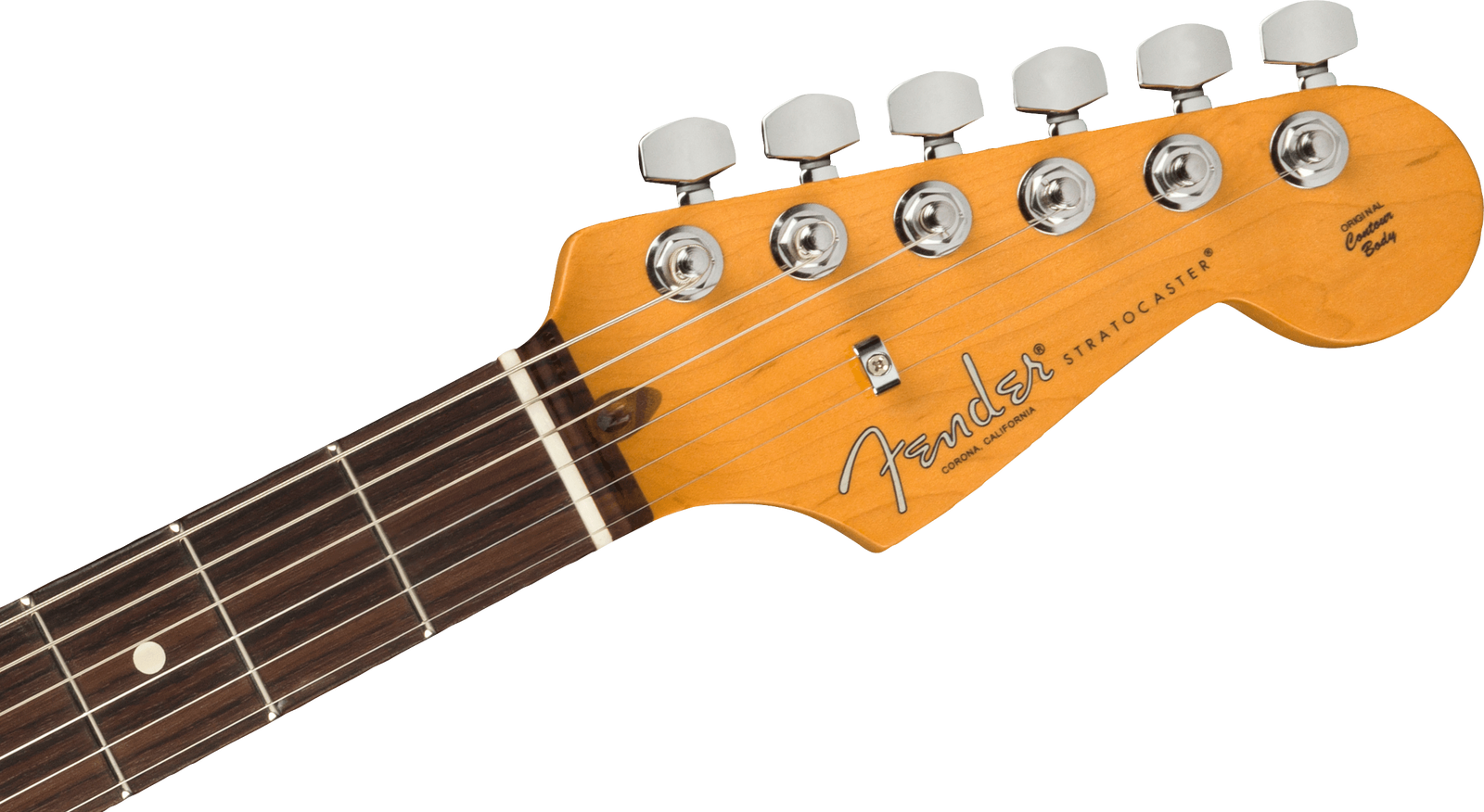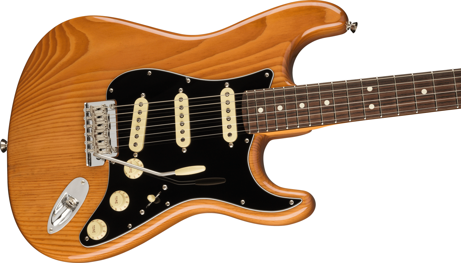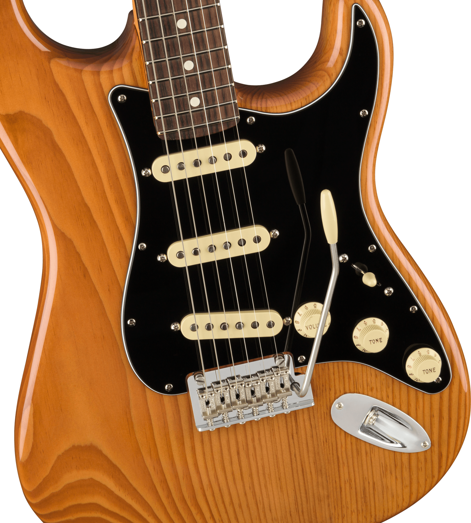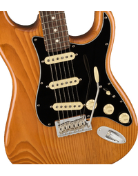 The Fender American Professional II Stratocaster RW, finished in Roasted Pine, is designed for players, drawing on over 70 years of Fender inspiration, innovation, and evolution. Comfortably play your favourite licks for hours, with a sculpted neck heel, Deep "C" profile Maple neck, with 'Super-Natural' satin finish, and a Rosewood fingerboard with 22 Narrow Tall frets and smooth rolled fretboard edges. A set of V-Mod II Stratocaster single-coil pickups make for the most articulate Strat warm, bell-like tone Fender has ever created, while a 2-point synchronised tremolo system, with bent steel saddles and cold-rolled steel block, makes for greater sustain, clarity, and high-end sparkle.
