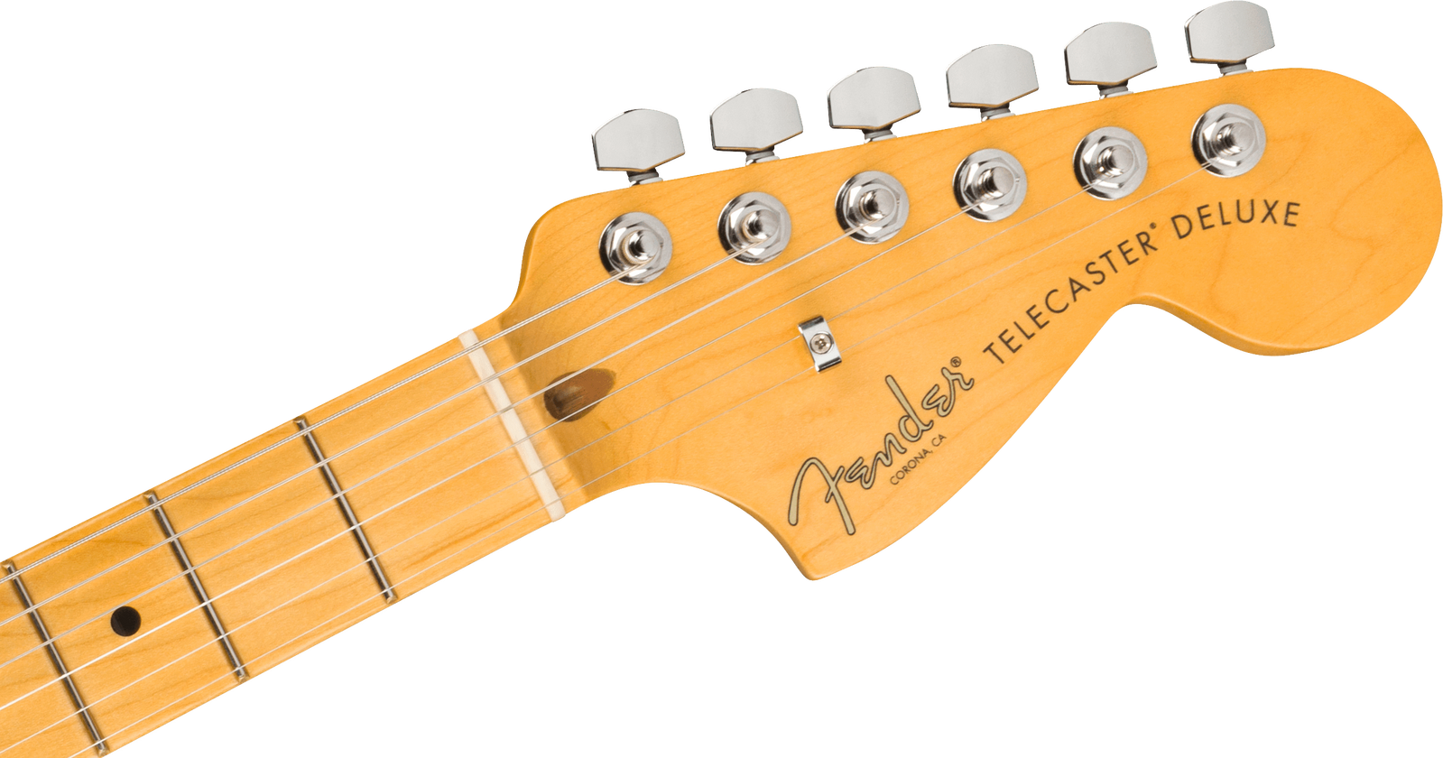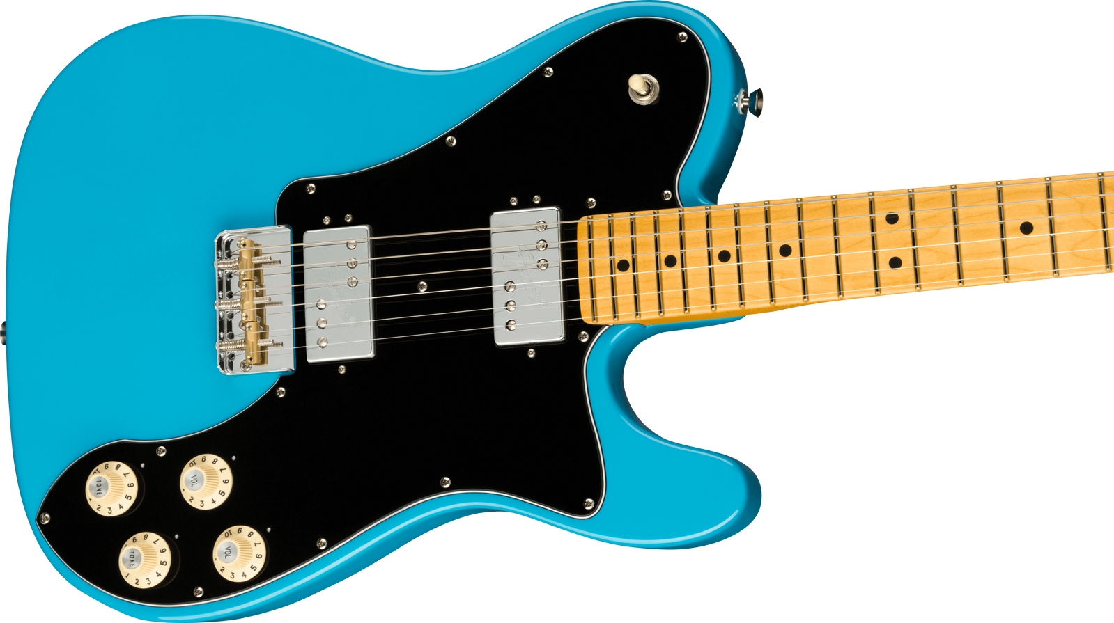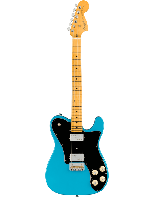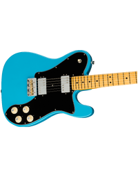 The Fender American Professional II Telecaster Deluxe MN, finished in Miami Blue, is designed for players, drawing on over 60 years of Fender inspiration, innovation, and evolution. Comfortably play your favourite licks for hours, with a sculpted neck heel, Deep "C" profile Maple neck, with 'Super-Natural' satin finish, and a Maple fingerboard with 22 Narrow Tall frets and smooth rolled fretboard edges. A pair of V-Mod II DoubleTap humbucking pickups make for the most articulate Tele Deluxe tone Fender has ever created, with a range of full, punchy humbucking tones and twangy, robust single-coil sounds. A classic Tele Deluxe style "cut" 3-saddle top-load, string-though bridge with compensated saddles gives this Tele the most comfortable to play, and flexible to set-up bridge yet. This bridge maintains the classic look and tone associated with the Tele Deluxe, while allowing for the most tailor-made set-ups available on a Tele, with the tension and tone of each string able to be individually adjusted.