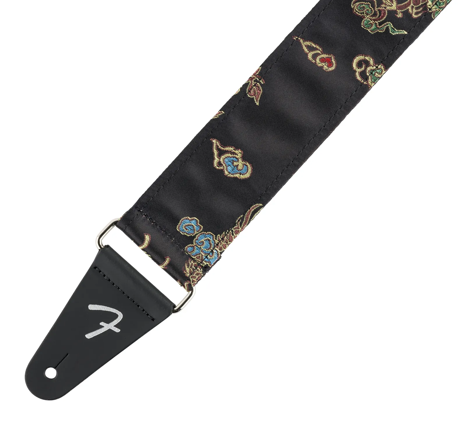The Fender American Satin Dragon Strap in Black combines classic elegance with modern comfort. Made in the USA, it features a double-sided polyester-nylon blend with a bold Chinese brocade dragon design and metallic satin finish. The strap is 51mm (2") wide and adjustable from 864mm to 1473mm (34"–58"), providing a secure and customisable fit. Real leather ends with the Fender “F” foil logo and silver hardware give it a premium look and lasting durability. At Riffs & Licks Music, we think this strap is ideal for players seeking a sophisticated, standout accessory that performs as well as it looks.