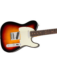 The Fender American Ultra Luxe '60s Telecaster Custom RW in 3-Colour Sunburst blends refined vintage style with state-of-the-art performance. Featuring a contoured alder body finished in 3-Colour Sunburst aged Heirloom lacquer, this Tele offers both comfort and classic visual appeal. The quartersawn maple neck boasts a Modern “D” profile, Ultra rolled edges, and a 10"–14" compound radius rosewood fingerboard fitted with stainless steel frets and Luminlay side dots. Pure Vintage ’63 Tele pickups capture the essence of '60s Fender tone, with S-1 switching expanding your sonic options. A 6-saddle bridge with chromed brass block saddles and locking tuners ensure rock-solid tuning and smooth adjustments.
