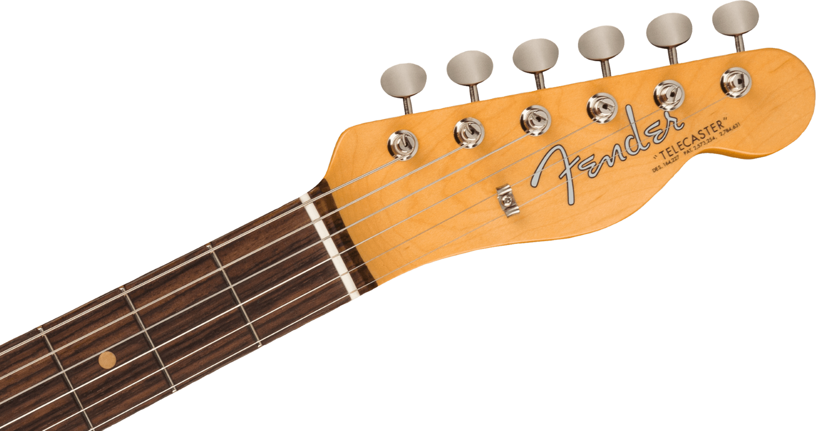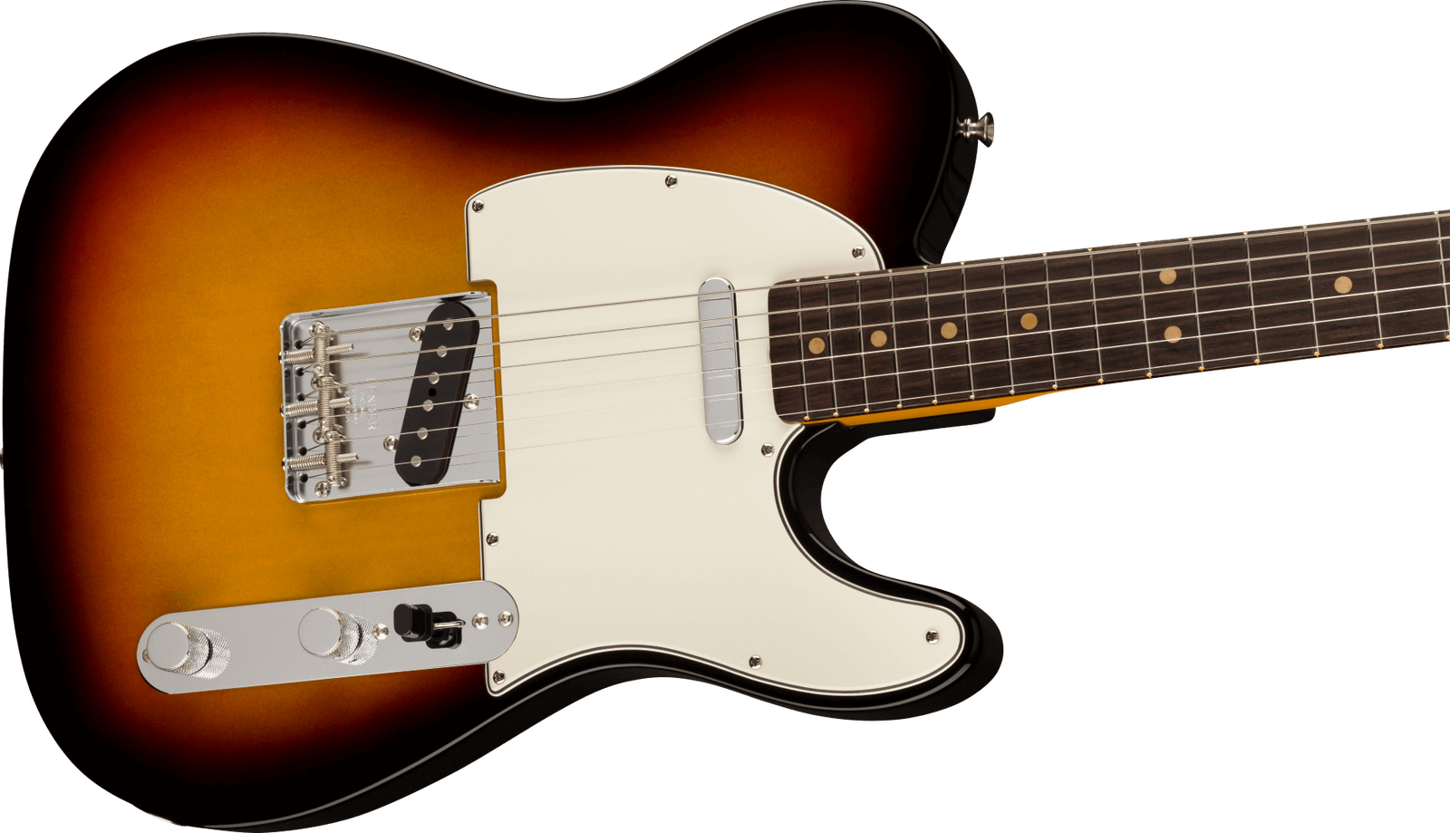 The first Telecaster rolled off the production line in 1951 - this simple yet innovative design was ground-breaking for its time, and has remained one of the most popular solid-bodied electric guitars since its introduction. By 1963, the Telecaster had evolved, and now combined Alder's punch focus with a warm round-laminated fretboard, accentuating the Tele's signature twang.
