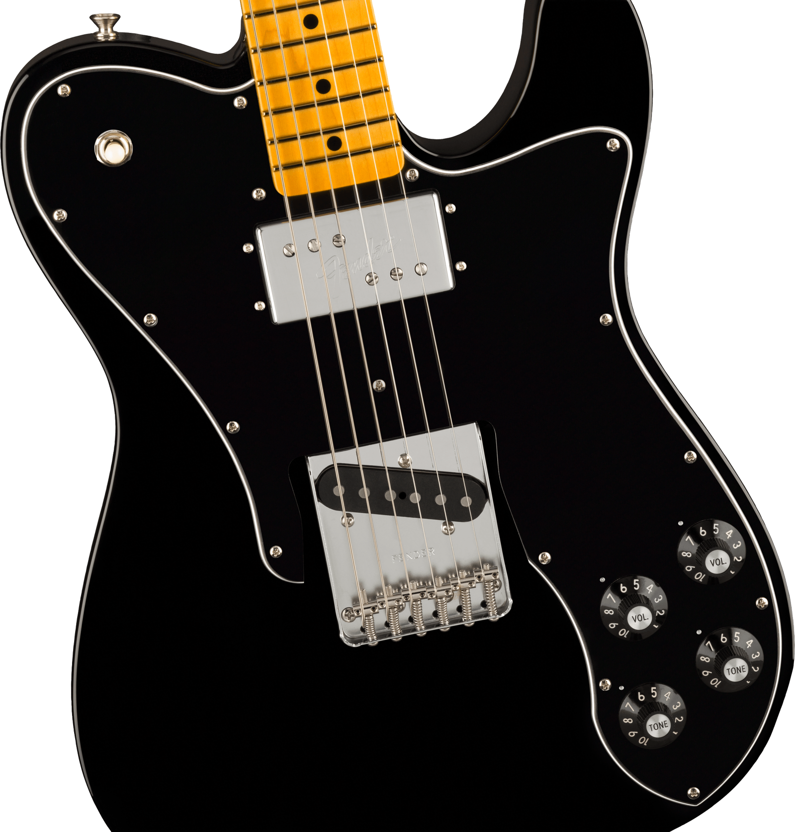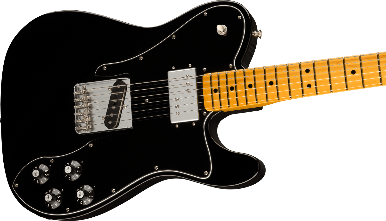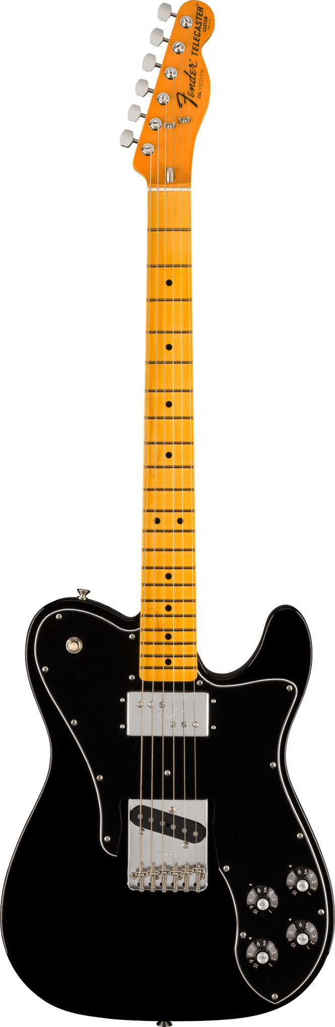 Immerse yourself in the timeless excellence of the Fender American Vintage II 1977 Telecaster Custom MN Black. This remarkable instrument from the American Vintage II series presents an astonishingly accurate rendition of a revolutionary design that shaped musical history. Meticulously crafted with a period-accurate body, neck, and hardware, and equipped with meticulously voiced, year-specific pickups, this guitar captures the essence of the original's craftsmanship and tone. The Telecaster Custom marked Fender's early exploration into the realm of humbucking pickups. Featuring a 3-way toggle on the upper bout and dual volume and tone controls elegantly mounted on a stylish elongated pickguard, the Tele Custom became an iconic piece of guitar history. The American Vintage II 1977 Telecaster Custom faithfully reproduces the quintessential tone and feel of the original, offering an extraordinary musical experience.