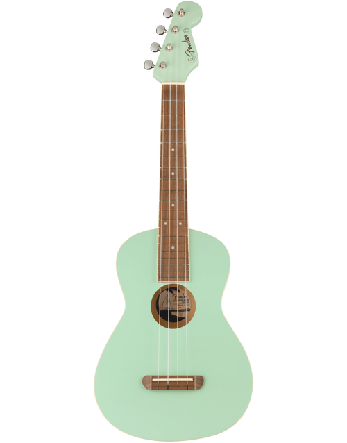 Inspired by the beach community on Catalina Island in Southern California, the Avalon tenor ukulele is the larger sibling to the incredibly popular Fender Venice soprano. A tenor ukulele gives the player a deeper tonal register than a concert or soprano body size, while still maintaining the portability to travel easily from the beach to the studio or jam room. The Avalon’s all-basswood construction and slim "C"-shaped neck profile, provide the superior tone and playability that is a hallmark of Fender ukuleles. Other features include a no-tie bridge for quick, easy string changes, classic Fender colour options and painted 4-in-line Strat headstock. With the Avalon ukulele, you can be transported to your own island no matter where you are.