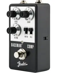 The Fender Bassman Compressor Bass Effects Pedal delivers studio-quality RMS compression in a compact, pedalboard-friendly design. Tailored specifically for bass instruments, it offers a no-fuss interface with ratio and release switches providing two finely tuned presets for effortless tonal balance. The blend control allows you to mix your clean signal with compressed tones, maintaining fullness and dynamics. For advanced control, internal attack and release knobs enable fine-tuning of compression parameters. Featuring soft-touch true bypass, a side-mounted pad switch for active basses, and a rugged aluminium enclosure, this pedal is built to handle the rigours of the road.
