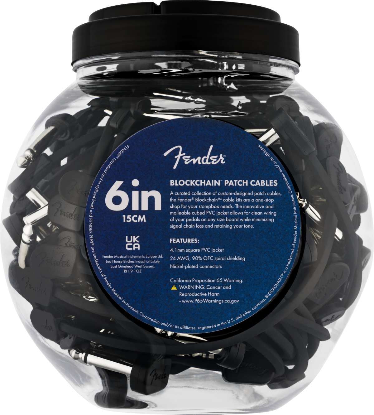 Fender Blockchain 6" Patch Cable Bowl Black (50-count)