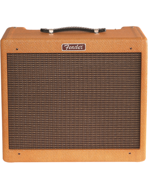 The Blues Jr. Lacquered Tweed takes Fender's 15W gem and gives it the true vintage treatment with a lacquered tweed covering and a vintage-voiced 12" Jensen speaker. Its golden tones are generated by an all-tube signal path using a pair of EL84 output tubes and 3 - 12AX7 preamp tubes. Add renowned Fender reverb, flexible controls, FAT switch for mid boost, and you're in business. And just look at that chrome panel, that tweed finish with vintage-style brown and gold grille cloth, and those vintage pointer knobs!