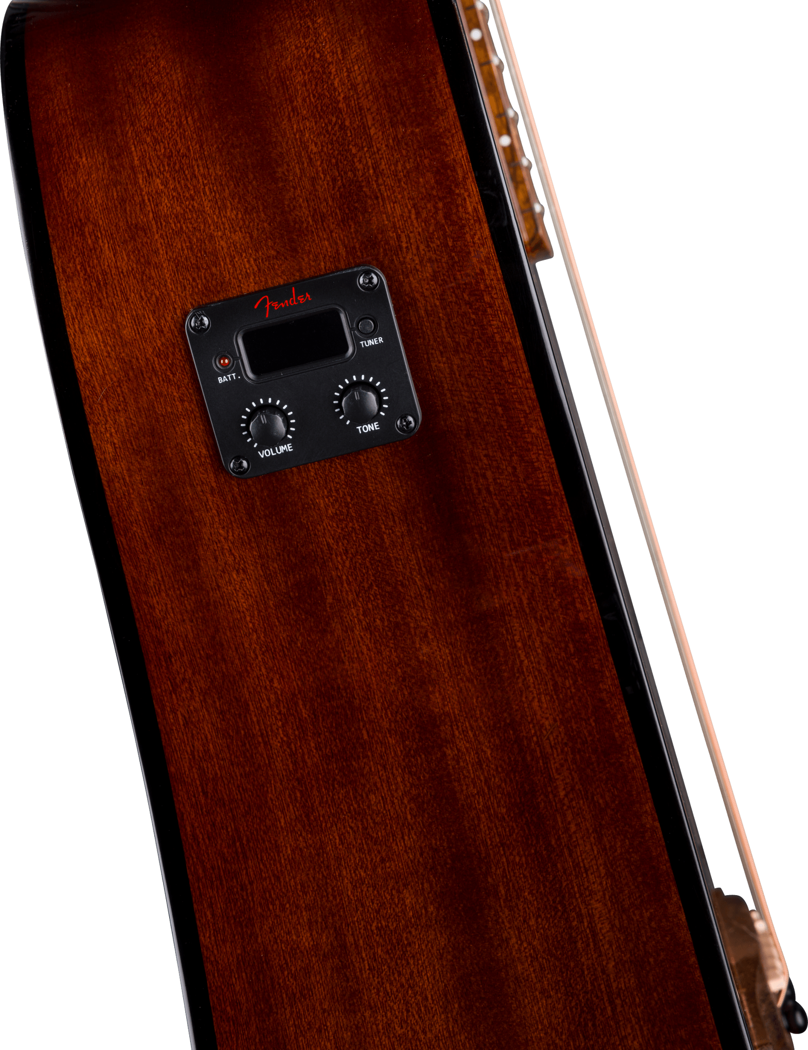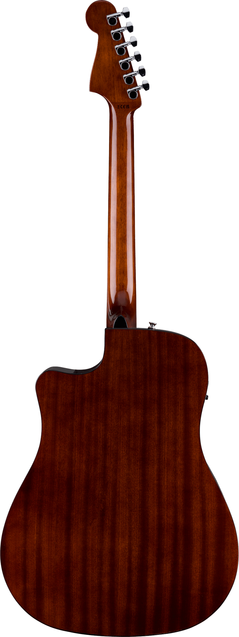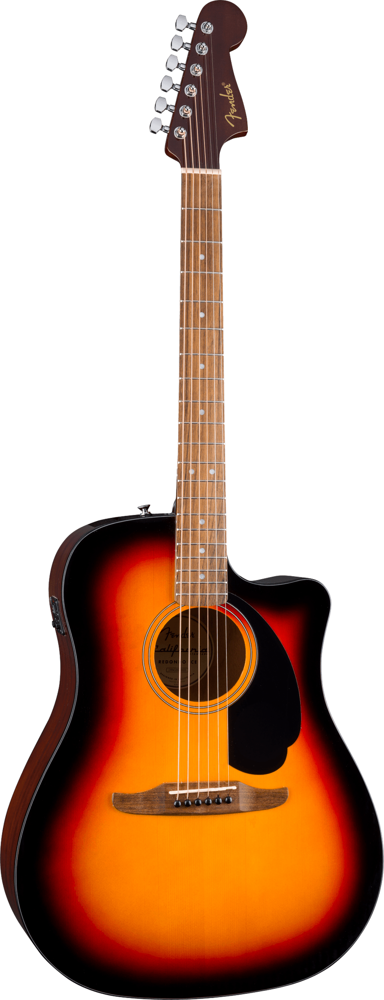 The Fender California Standard Redondo CE is a bold take on the classic dreadnought, with a cutaway for improved upper fret access and a striking all-laminate body featuring a spruce top and sapele back and sides. Its slim "C"-shaped neck and 25.5" scale make it comfortable for extended playing, while onboard Fender electronics with an integrated tuner offer plug-in performance and recording versatility. Finished in durable gloss and fitted with sealed tuners and a walnut fingerboard, the Redondo CE blends playability, stage-ready features, and iconic Fender style.