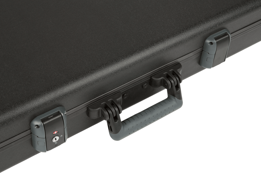 The Fender Deluxe Moulded Bass Case offers robust protection for your Precision or Jazz Bass, featuring an ATA-moulded ABS outer shell and custom EPS foam interior for a snug, secure fit. A TSA-approved centre latch and military-grade construction ensure your bass stays safe in transit, whether you're touring or flying. Inside, a plush grey lining and extended neck cradle provide excellent cushioning, while a large interior storage compartment is ideal for cables, straps, and accessories. Designed for convenience, this case also includes rugged feet for stable upright placement and an ergonomic injection-moulded handle for comfortable carrying.