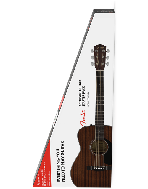 The Fender CC-60S Concert Pack V2 All-Mahogany features a compact and comfortable acoustic guitar, ideal for beginning players. The smaller concert-sized body is easy to manoeuvre in any playing position, with an articulate voice that's great for fingerpicking. Its tuneful solid Mahoganytop, easy-to-play neck, and mahogany back and sides make the CC-60S a perfect choice for the beach, the patio or the coffeehouse. This pack also includes a Fender gig bag, strap, picks and a spare set of strings.