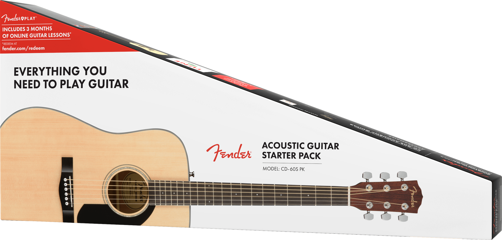 The Fender CD-60S Dreadnought Pack V2, finished in Natural, boasts upgraded features that players of all types are sure to love, including a solid Spruce top, comfortable Walnut fingerboard with rolled edges and a new, easy-to-play neck shape. The CD-60S features Mahogany back and sides to complement its solid Spruce top, for warm and balanced tone. The dreadnought-sized body provides traditional full-bodied output with plenty of projection, so whether you're playing at home, around the campfire or at the coffee shop, you'll get classic Fender sound and vibe with the CD-60S. This complete starter pack includes the CD-60S, along with a gig bag, picks, a strap, a spare pack of strings and a free 90-day subscription to Fender Play with access to hundreds of online lessons - everything you need to start playing instantly.