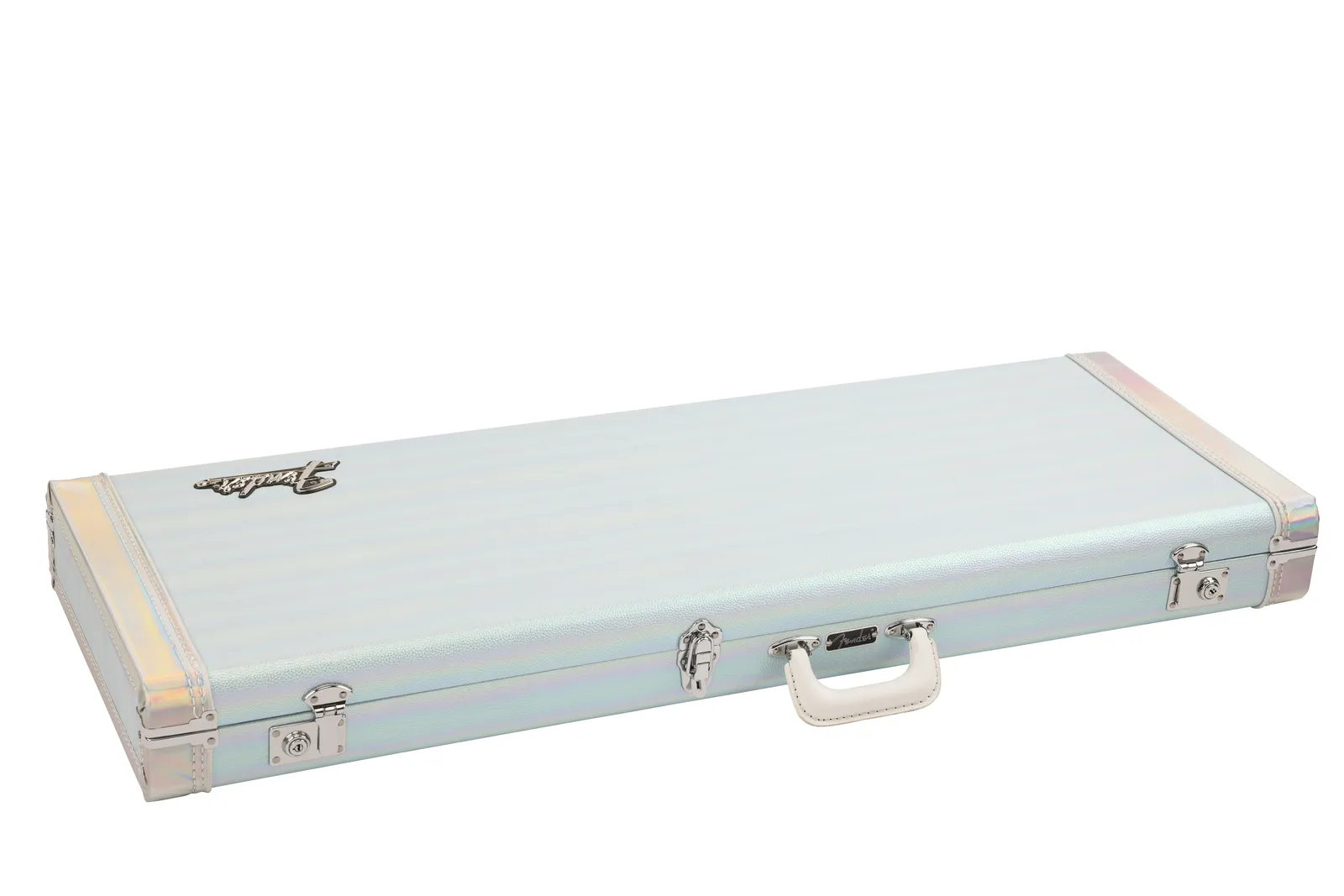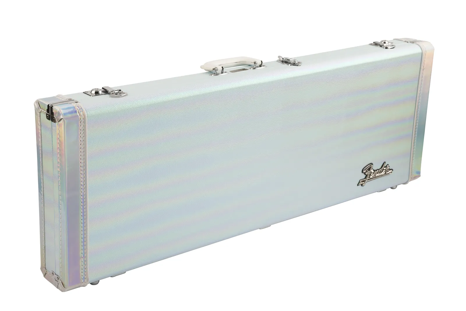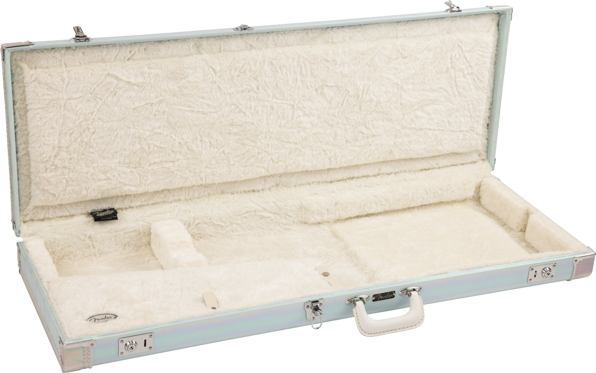 The Fender Classic Series Stratocaster and Telecaster wood guitar case in Iridescent finish is built to protect your instrument while making a strong visual statement. A 3 ply hardshell wood construction with durable vinyl wrap creates a rigid exterior that helps guard against knocks, pressure, and everyday transport wear. The iridescent Galaxy-style exterior adds visual impact without compromising the case’s structural integrity.