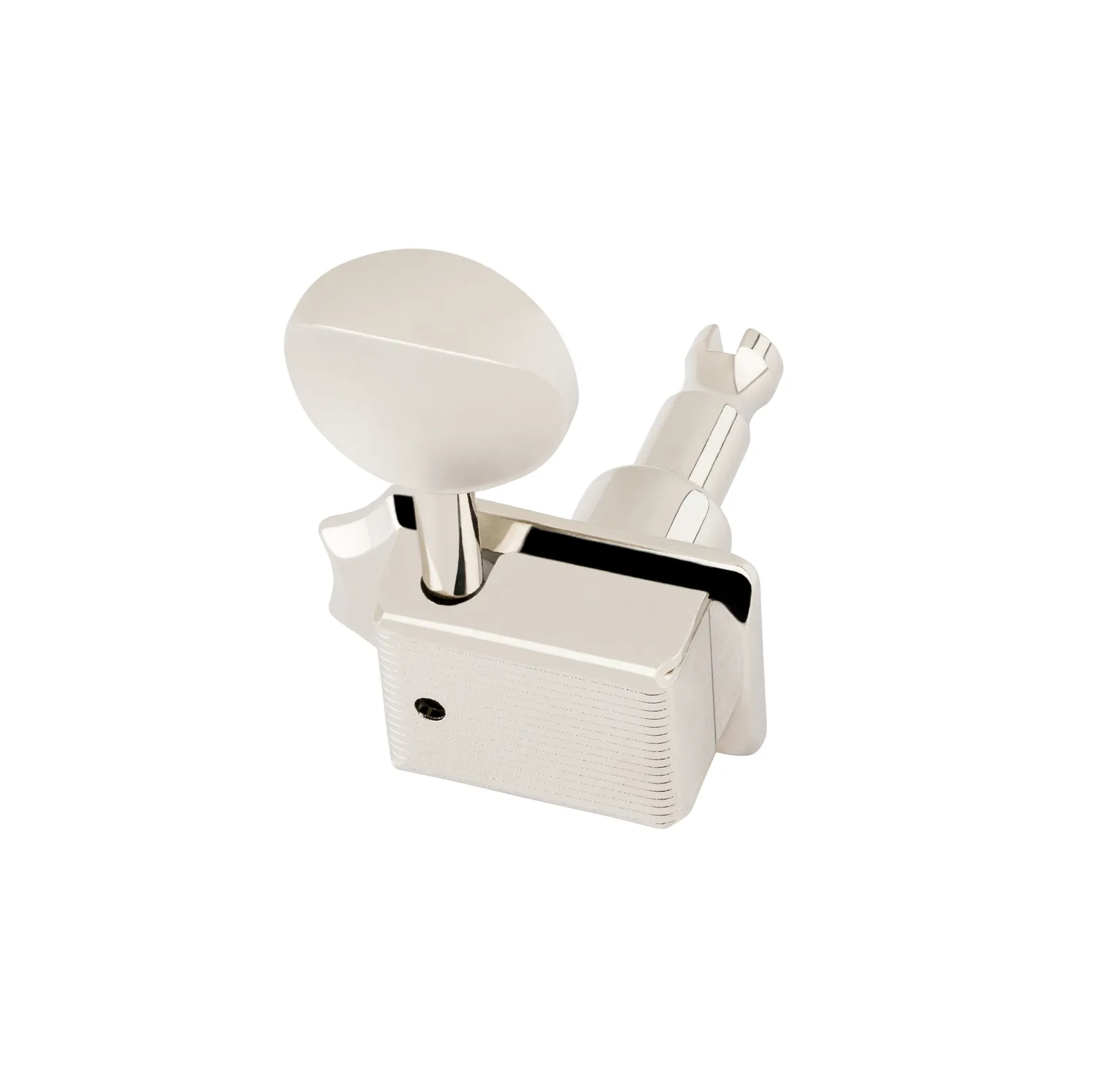 Eliminate the need for string guides with ClassicGear Staggered tuning machines. An old-school safety post provides classic looks and excellent functionality, while the contemporary dual-pin mounting system delivers easy and stable installation. Tall post tuners are used for low E and A strings and shorter post tuners used for D, G, B and high E strings. Staggered tuners increase the break angle over the nut and improve tuning stability. Featuring a modern 18:1 gear ratio, ClassicGear tuning machines have smooth action and make it easier to fine-tune your instrument.