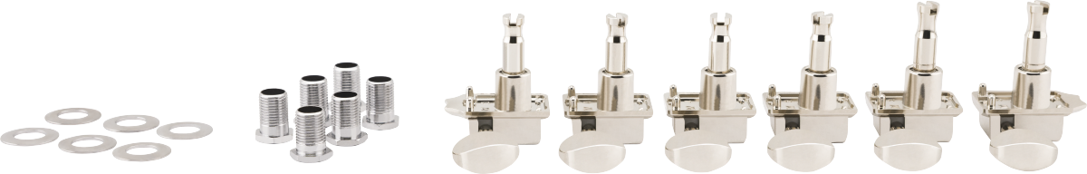A direct drop-in replacement for modern-style Fender electric guitars featuring our 2-pin mounting system including: American Professional I & II, American Ultra I & II, American Performer and Player I & II and other series. Set of six tuning machines (2 long post and 4 short post) Gear ratio of 18:1 for easier fine-tuning Chrome finish Bushings and washers included 2-pin mounting