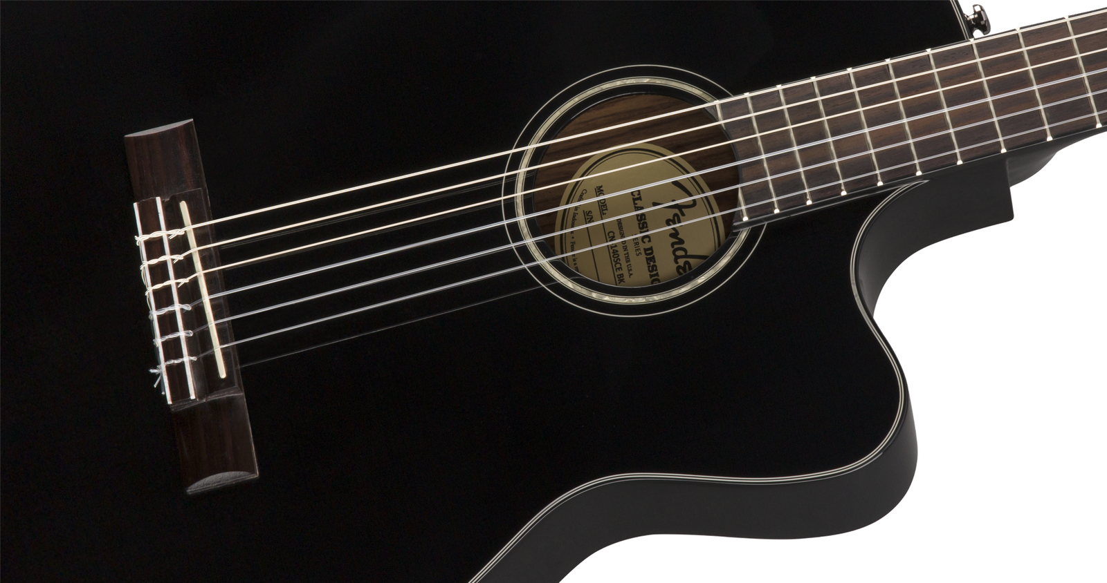 At Riffs & Licks Music, we think the Fender CN-140SCE Nylon Thinline, in Black (with Case Included), is a great hybrid between steel- and nylon-string guitars, which improve playability - the inclusion of a solid top and a pickup, at an affordable price, make this guitar a great choice for beginner and intermediate players.