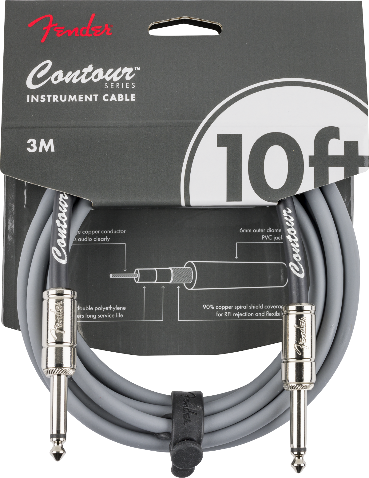 The Fender Contour 10' Cable in Inca Silver is a high-performance instrument cable designed for reliable use in both studio and live settings. Its 24-gauge conductor ensures a strong and clear signal, while the 90% oxygen-free copper spiral shielding minimises interference for pristine sound quality.