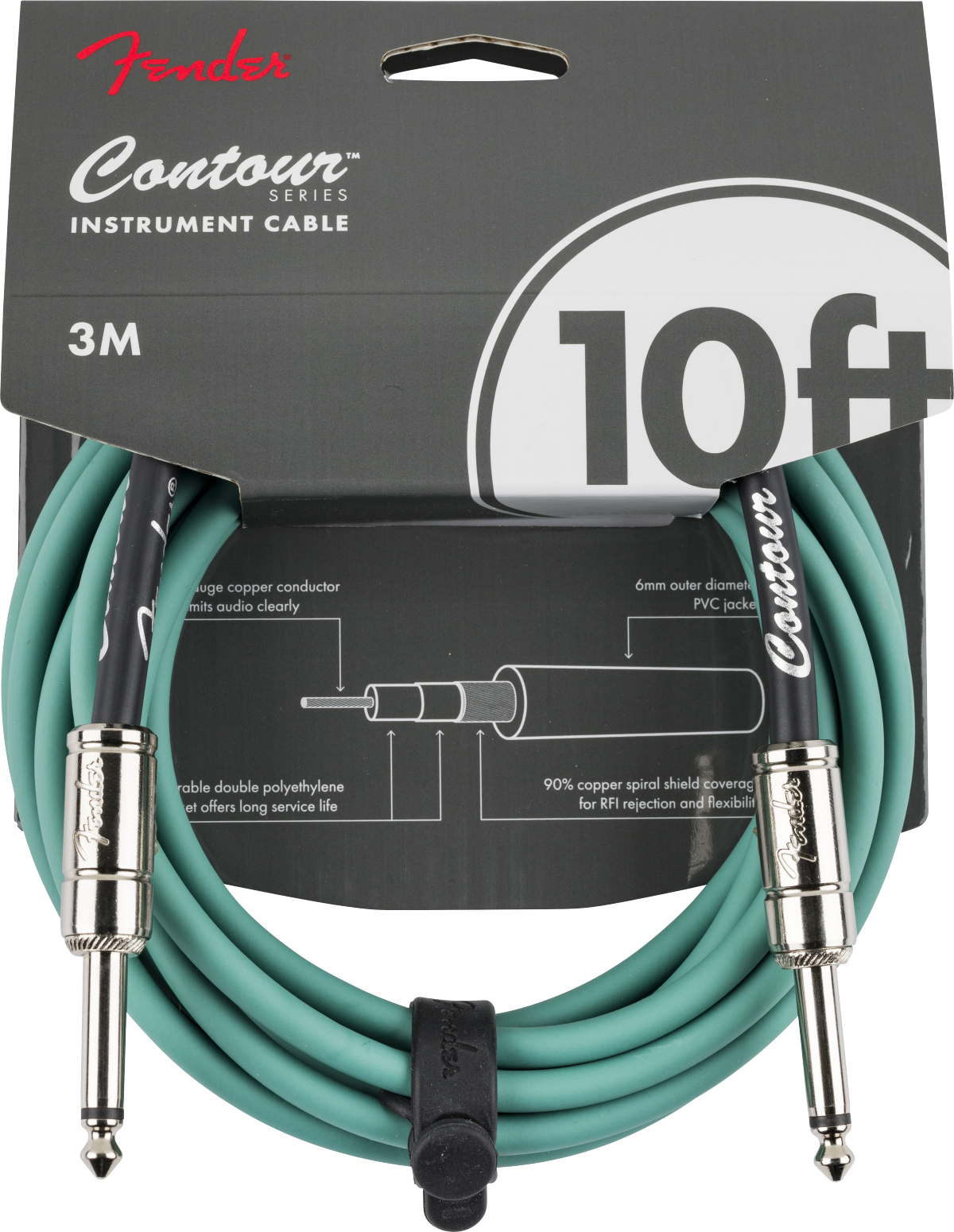 Fender Contour 10' Instrument Cable Sherwood Green
