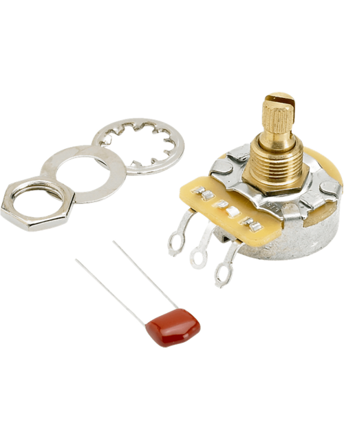 An integral part of the Delta Tone system on Fender American series electric guitars, this 250K "no-load" potentiometer functions as a normal tone control from 1 to 9. At 10, the tone control is removed from the circuit for increased output and overall tonal response. Fits most U.S.- and Mexico-made instruments requiring a 3/8" split-shaft potentiometer. Takes push-on control knob (no set screw). Mounting hardware and .022mf 250V capacitor included.