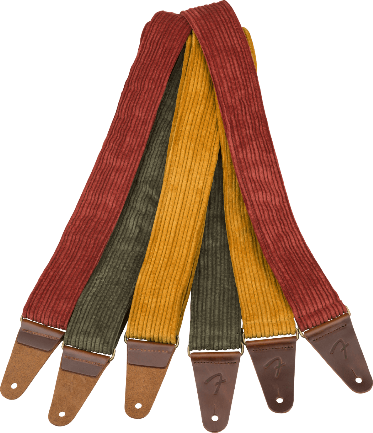 Fender's softest strap yet! Featuring three warm colorways, the Corduroy Strap is crafted from a double-sided polyester corduroy and offers full grain leather ends for ultimate comfort and durability.