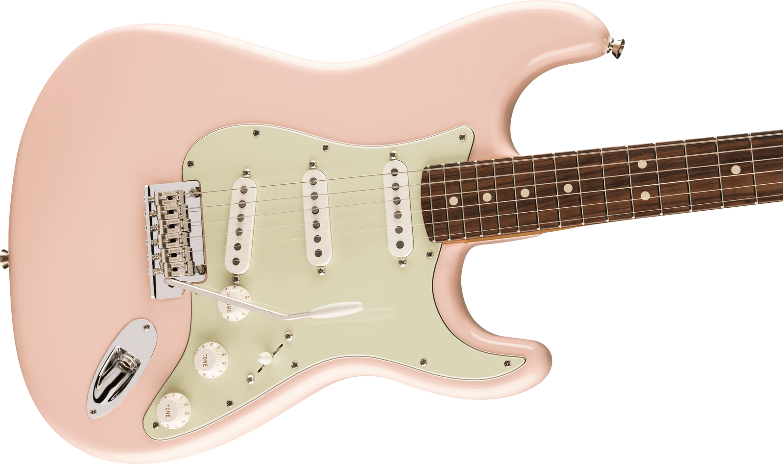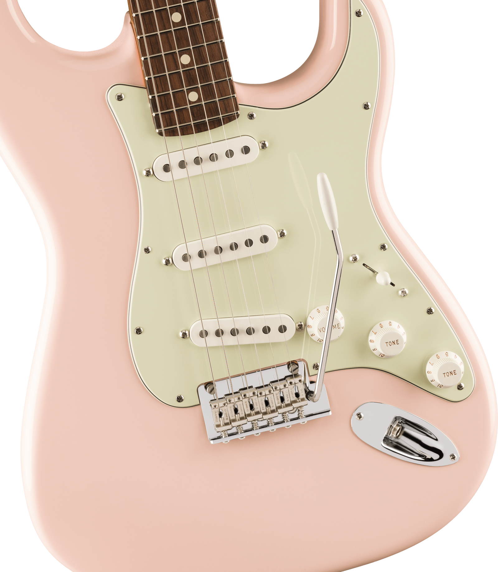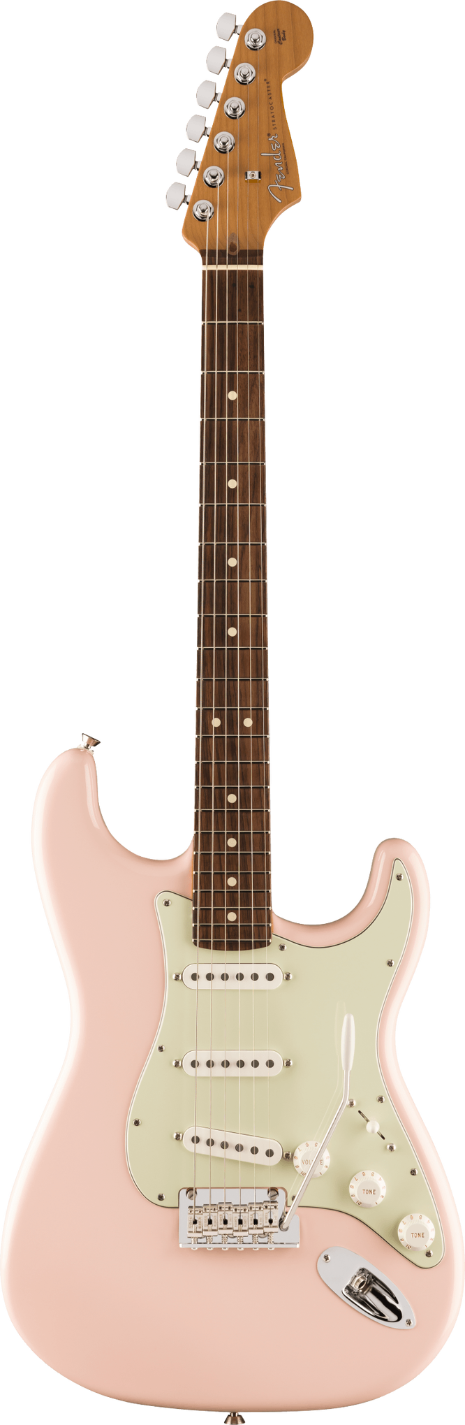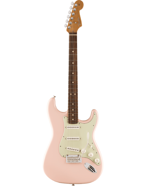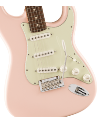The Fender American Professional II Dealer Exclusive Stratocaster in Shell Pink is a standout blend of vintage tone and modern performance. Outfitted with Custom Shop '69 Strat single-coil pickups, this guitar delivers the punchy, full-bodied sound that shaped late-'60s blues rock. A roasted maple Deep "C" neck with rolled fingerboard edges offers exceptional comfort, while the sculpted neck heel provides effortless access to the upper frets. A 2-point tremolo with a cold-rolled steel block enhances sustain, clarity, and stability, making it ideal for expressive playing. The push-push switch on the second tone control activates the neck pickup in positions one and two, expanding tonal versatility. Finished in stunning Shell Pink and complete with a Deluxe Molded hardshell case, this limited-edition Strat is a modern classic.