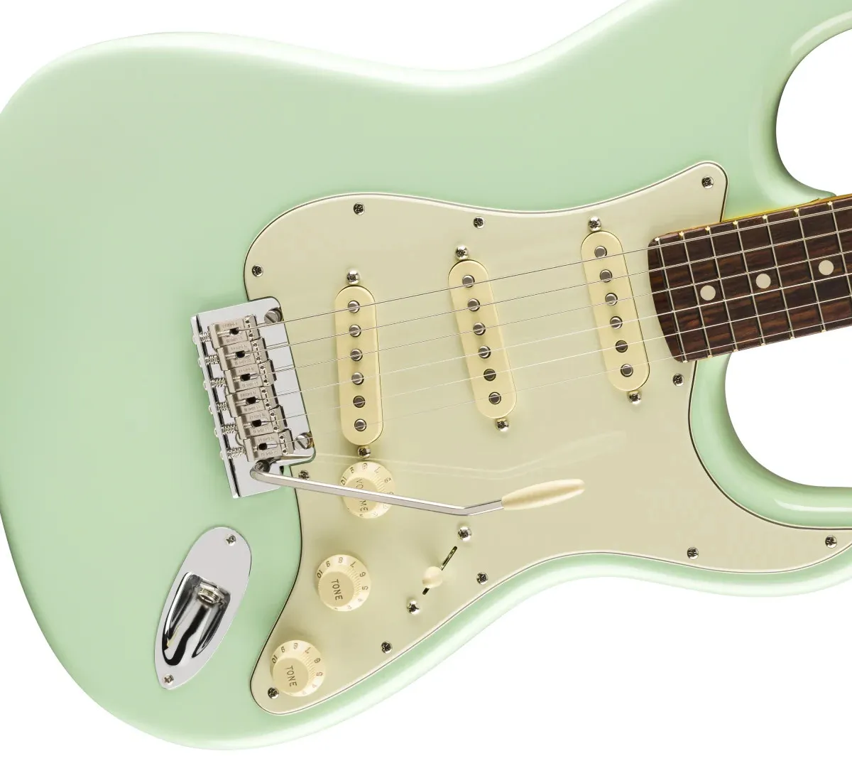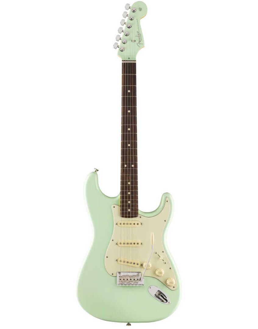 This Fender Dealer Exclusive American Professional II Stratocaster features a Surf Green finish with matching headstock, and is available in limited quantities.