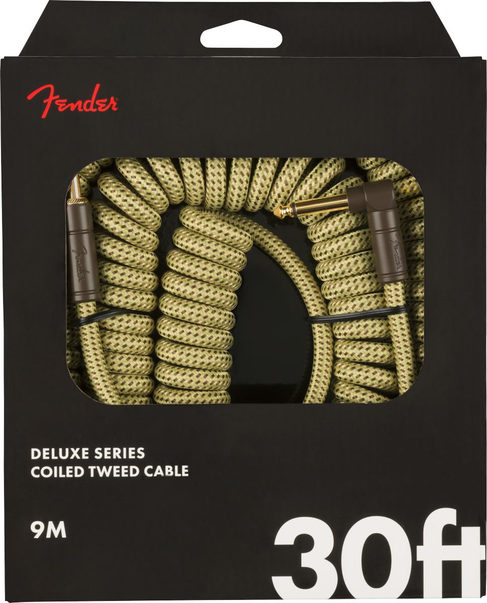 In a Fender first, this coiled instrument cable is wrapped in durable tweed—a timeless Fender classic. Deluxe Series cables use the highest-quality materials and braided shielding to deliver flagship conductance and transparency for premium tone. Custom moulded ends and 24k gold-plated connectors offer noise-free performance and top-tier RFI rejection.