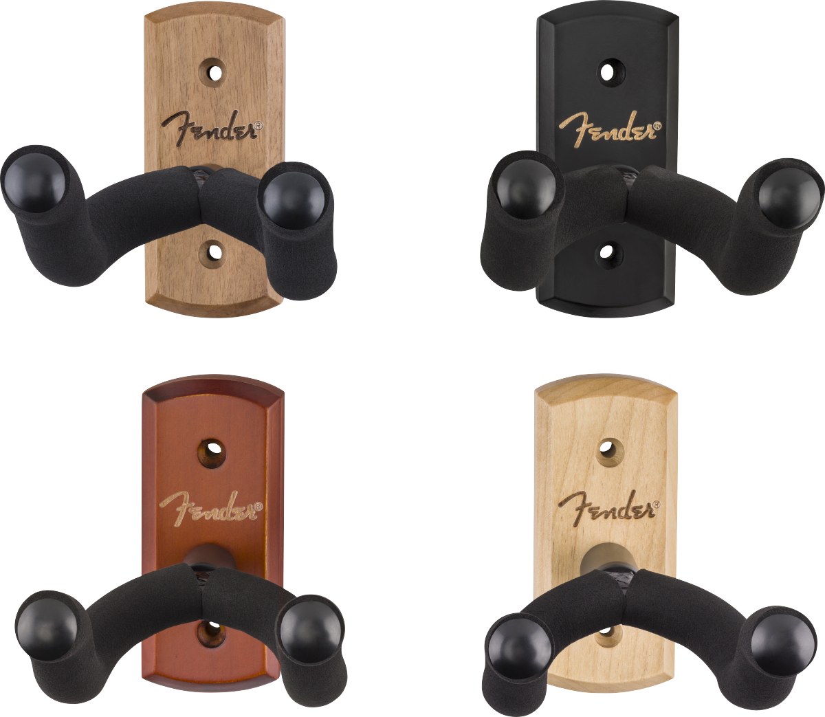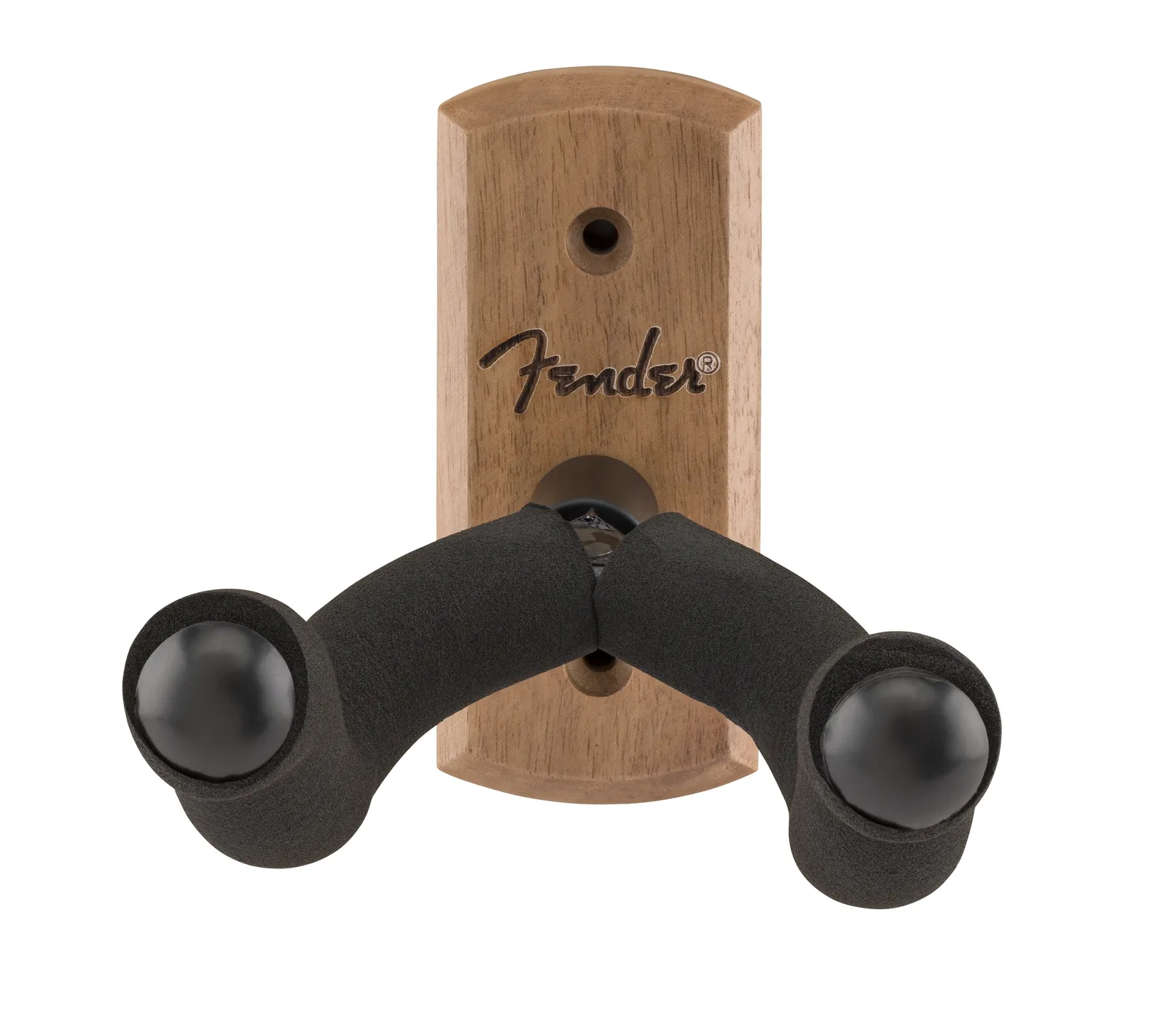 Display your prized guitar in style with the new Fender Essentials Guitar Wall Hanger. Built from durable hardwood with a reinforced steel yoke, it offers a secure hold, while the pivoting EVA foam-padded yoke adjusts to fit most headstock shapes for a straight hang. Complete with a laser-engraved Fender logo and mounting hardware included, the Essentials Wall Hanger keeps your go-to guitar ready to play while adding a subtle touch of Fender flair to your space. Hardwood with durable steel yoke for ultra reinforcement. Suitable for most wide to narrow headstock shapes. EVA foam padded headstock yoke pivots to ensure straight hanging. Features laser-engraved Fender logo. Tested and determined safe for standard polyurethane finishes. Includes all mounting hardware.