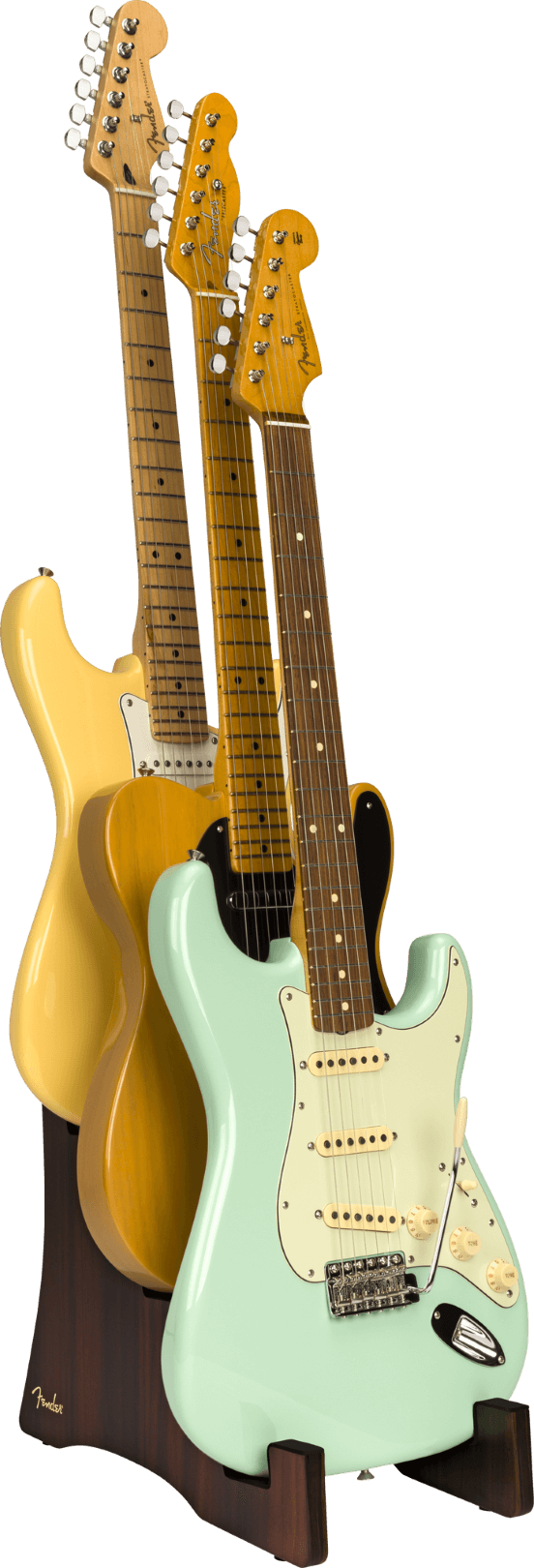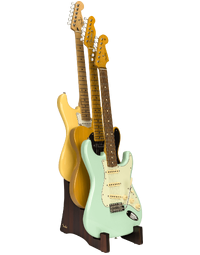 Featuring a sleek mid-century modern aesthetic, this stand allows quick access to three of your favorite electric guitars. Its tiered construction not only ensures the safe display of your instruments but also maximizes space with its compact design. Whether showcasing prized possessions or ensuring easy access during jam sessions, the Fender Deluxe Wooden Tiered Guitar Stand combines elegance and practicality seamlessly.
