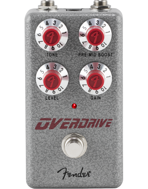 The Fender Hammertone Analogue Overdrive Pedal delivers warm, gritty drive in a compact, rugged form. Its original Fender-designed analogue circuit offers everything from subtle boost to full, saturated overdrive, with a pre-gain mid boost to cut through any mix. Top-mounted jacks make for easy pedalboard integration, while true bypass ensures your tone remains pure when disengaged. Powered by a 9V battery or standard centre-negative adaptor, the Hammertone Overdrive is a versatile essential for any guitarist seeking responsive, dynamic overdrive tones.
