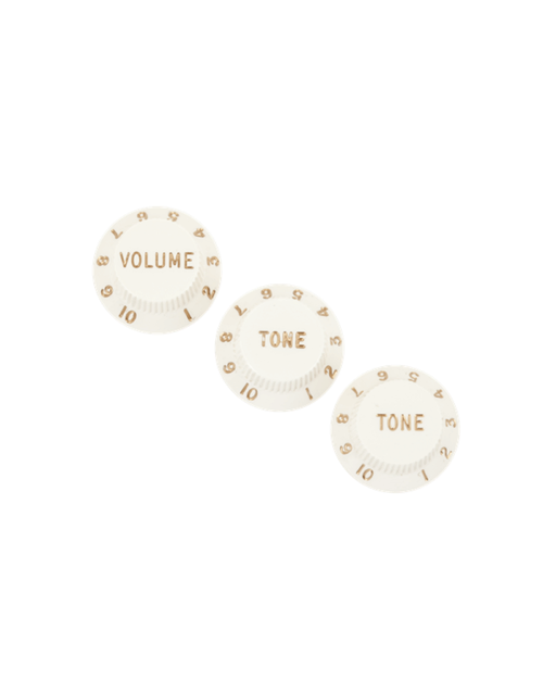 Set of three plastic push-on control knobs designed to fit 1/4" split-shaft potentiometers on nearly all U.S.- and Mexico-made Stratocaster models manufactured from 1954-present.