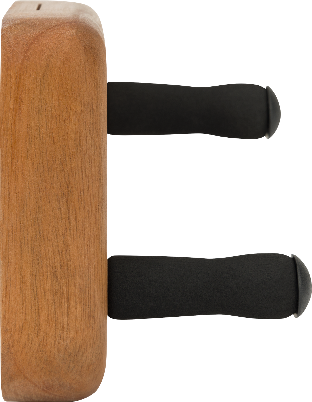 Showcase your Telecaster with the Level-Up Wall Hanger. Crafted from mahogany-finished wood, this uniquely shaped hanger features offset dowels to securely suspend your guitar. Designed to ensure straight hanging, the offset dowels are positioned precisely to the shape of your guitarÂ’s headstock. This distinctive fixed dowel design also allows your instrument to sit closer to the wall than standard yoke hangers, offering the illusion of floating suspension to seamlessly integrate into your space. The hangers also feature a pick holder slit on top for added convenience. Please note that these hangers are crafted from authentic wood, which may display natural imperfections. Each hanger is one-of-a-kind and may vary slightly from the photographed product.