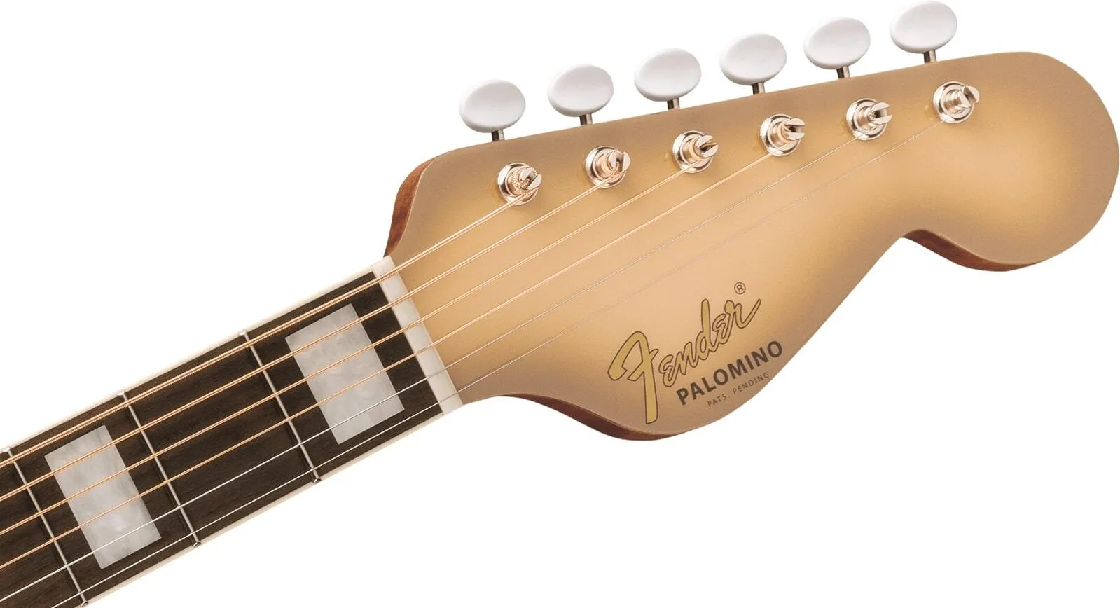 The Fender Limited Edition California Vintage Palomino blends 60s innovation with modern craftsmanship. Drawing from Leo Fender’s original designs, this auditorium acoustic features a solid Sitka spruce top and solid ovangkol back and sides for a rich, balanced tone. Engineered with Performance X bracing, it ensures exceptional resonance and clarity. The okoume neck with a modern "V" profile offers comfort and sustain, while the Fishman Presys VT Plus electronics provide faithful amplified sound. With a vintage 6-in-line headstock, pearloid block inlays, and a bone nut and saddle, this guitar is a true tribute to Fender’s heritage. Comes with a vintage-style hardshell case.