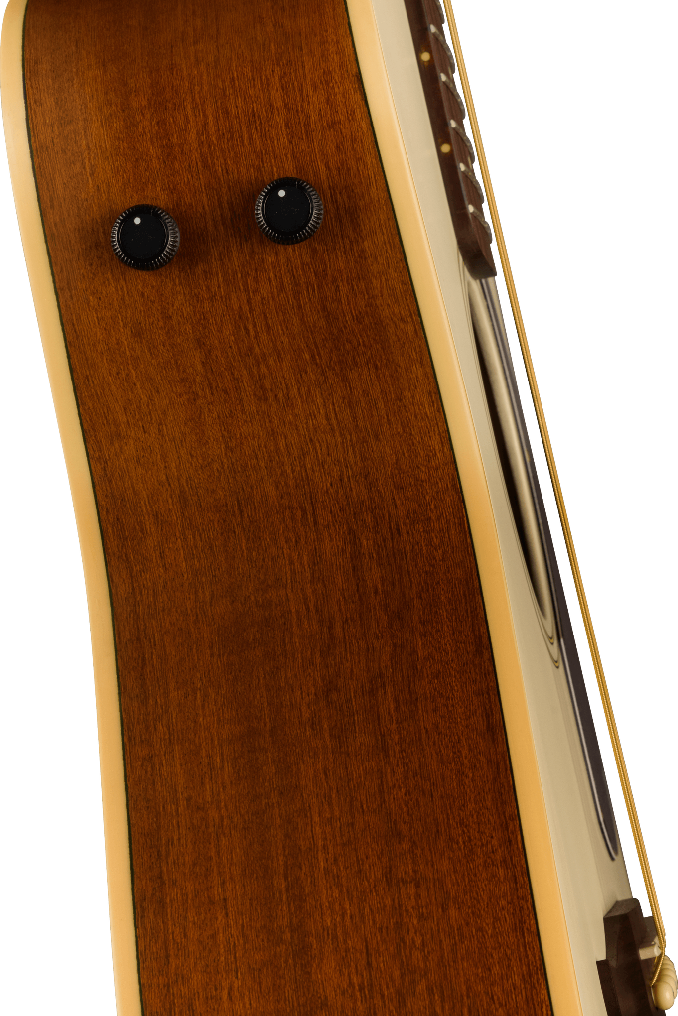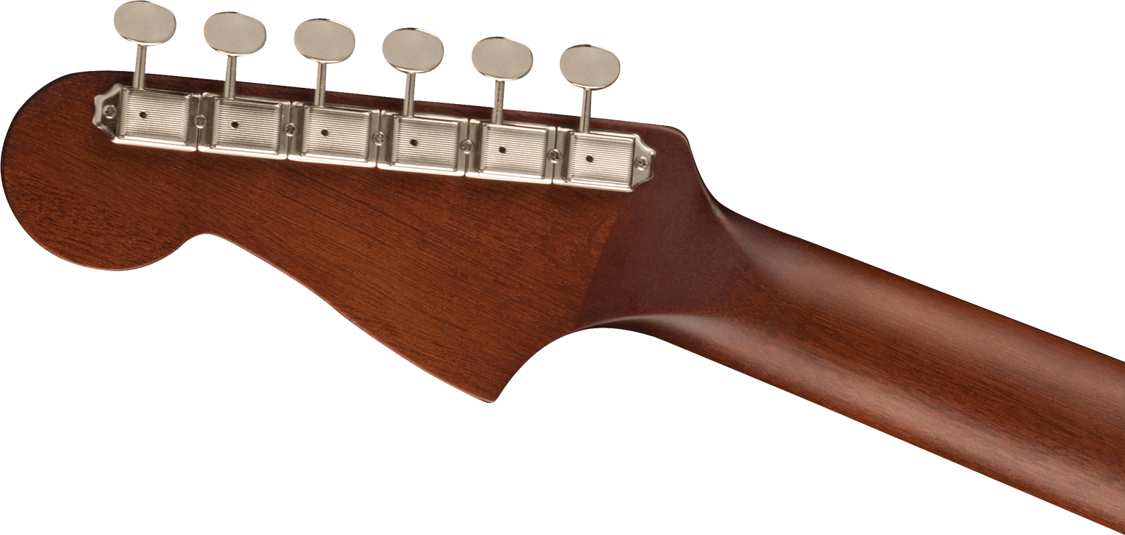 Crafted with an X-braced solid spruce top and sapele back and sides, the Malibu Player's compact parlor-sized body produces a sweet and articulate voice, encouraging players to explore new chords and melodies. Its comfortable feel and inviting sound make it the perfect companion for your musical journey. The nato neck features an easy-to-play slim "C"-shaped profile, a short 24" scale length, and a tilt-back 6-in-line headstock—a distinctive nod to Fender's electric guitar DNA.