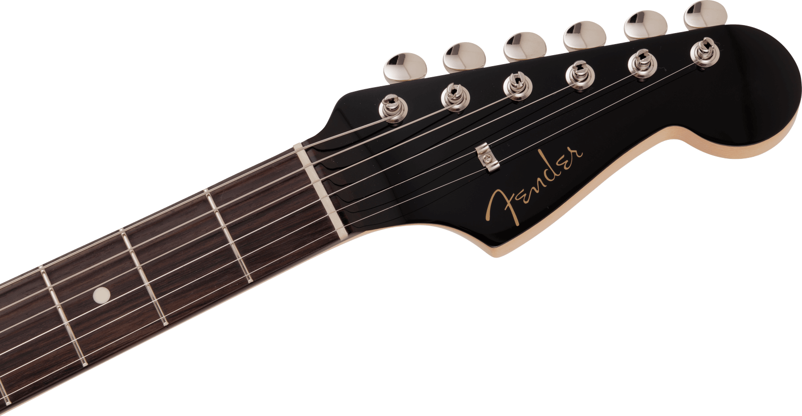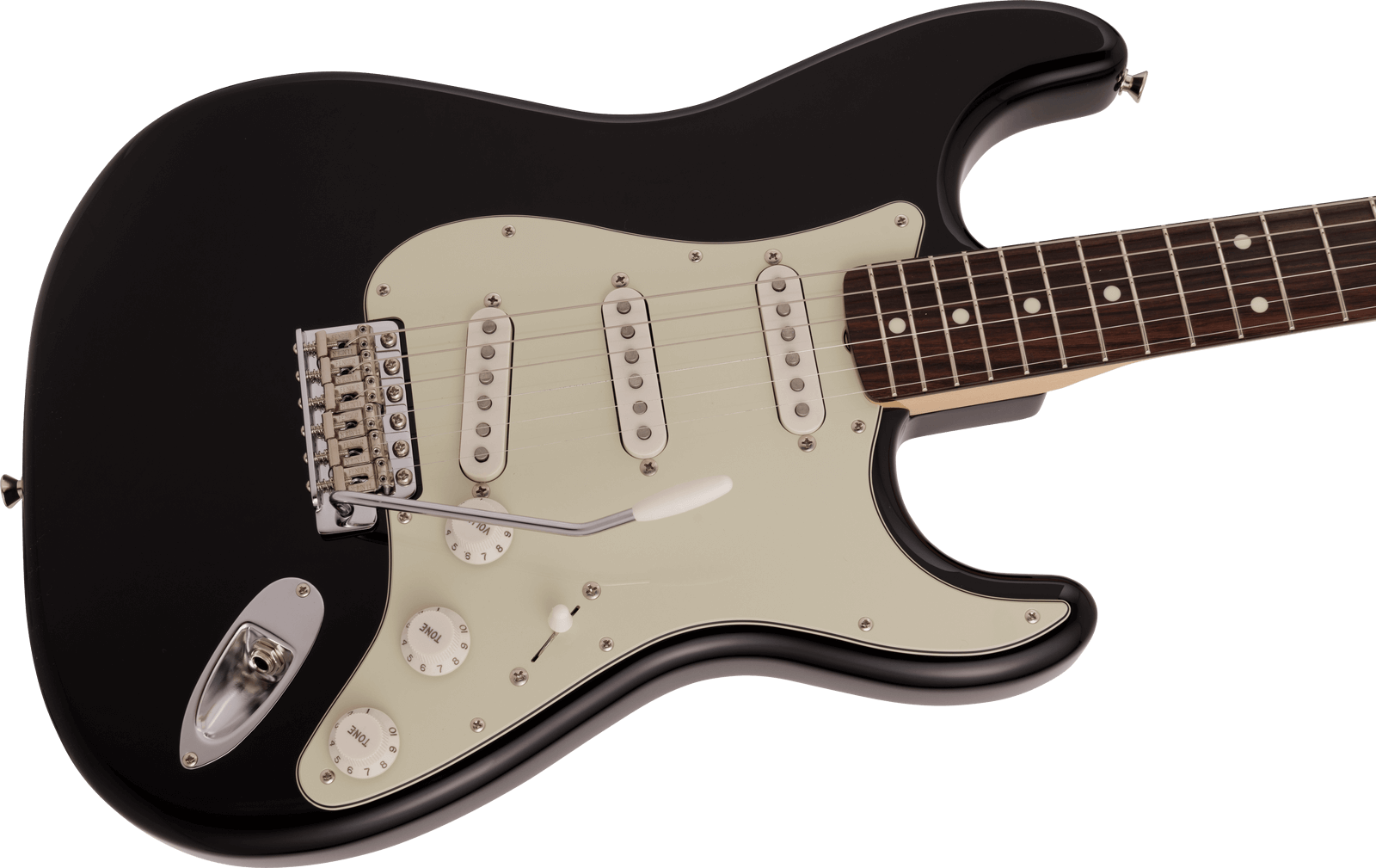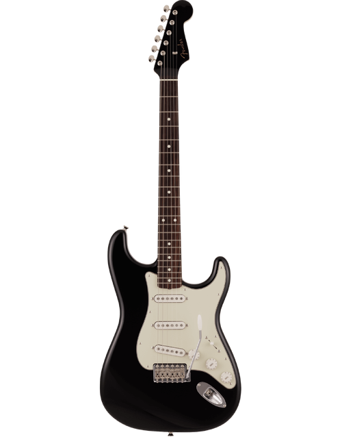 The Fender MIJ 2023 Collection Traditional 60s Stratocaster RW, finished in Black, combines vintage tone and aesthetics with modern Fender Japan craftsmanship and playability.