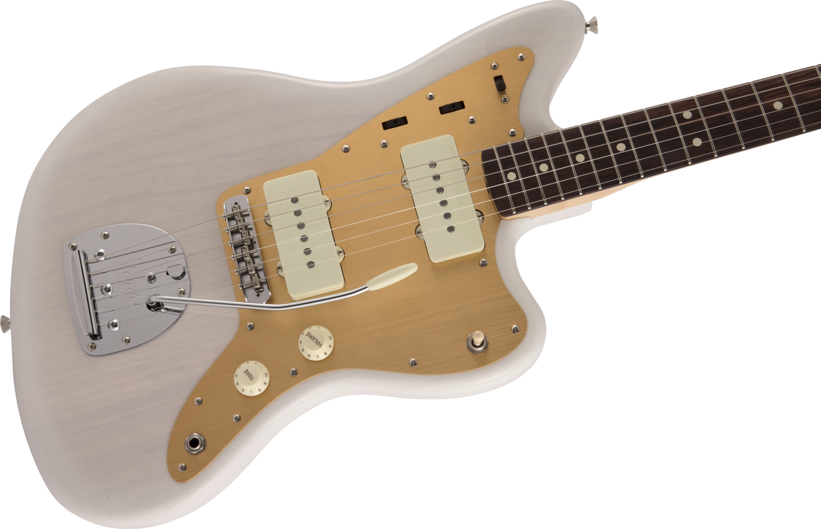 The Fender MIJ Heritage 60s Jazzmaster RW, finished in White Blonde, is a period-correct tribute to a classic Fender model, with premium quality Fender Japan craftsmanship. The Fender MIJ Heritage series uses body and neck shapes, pickup settings and finishes referenced from the original Fender US drawing archives, as well as a number of vintage reference instruments.