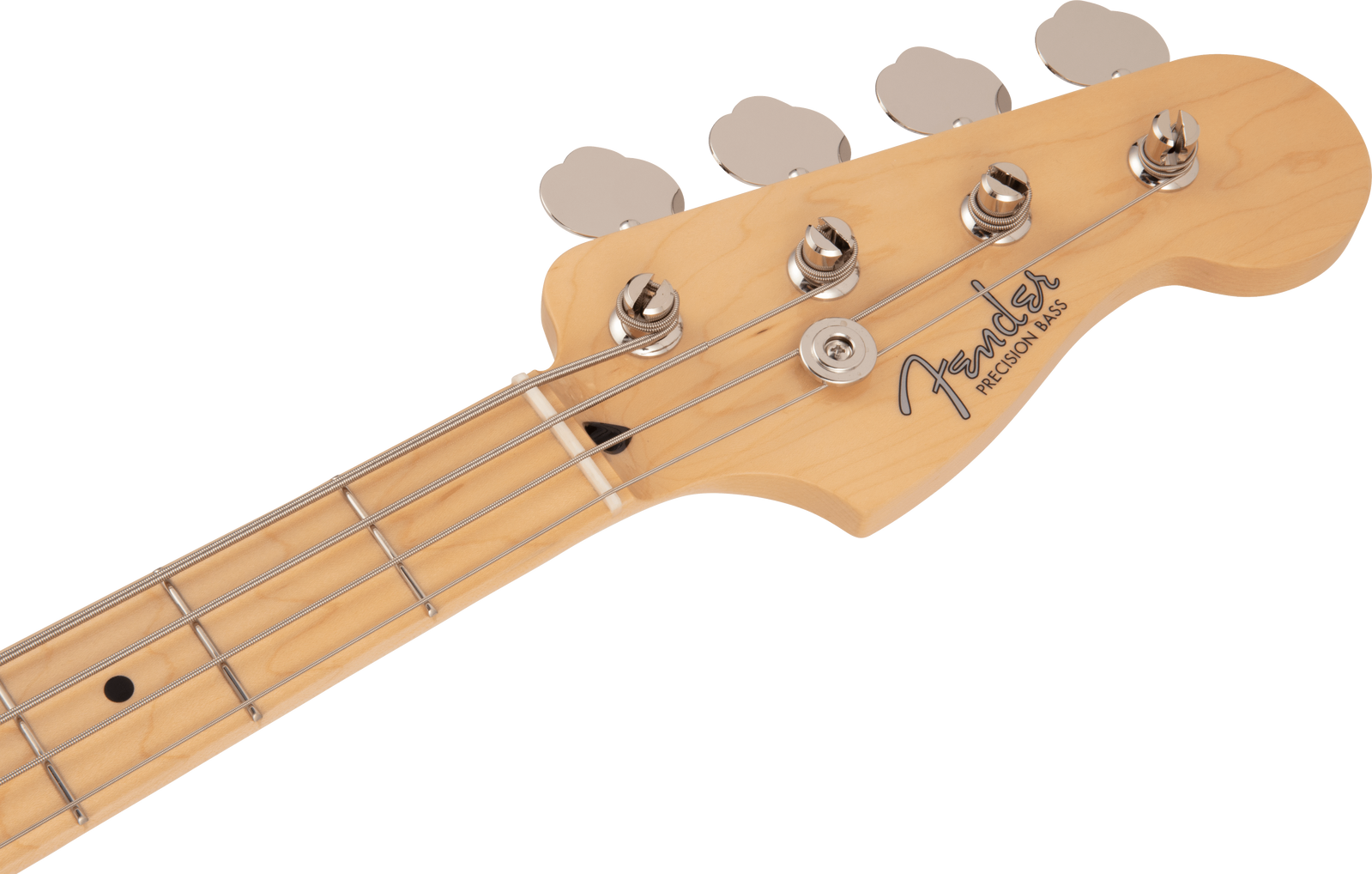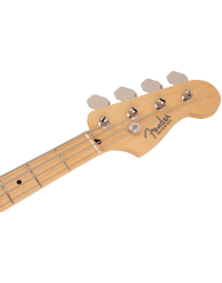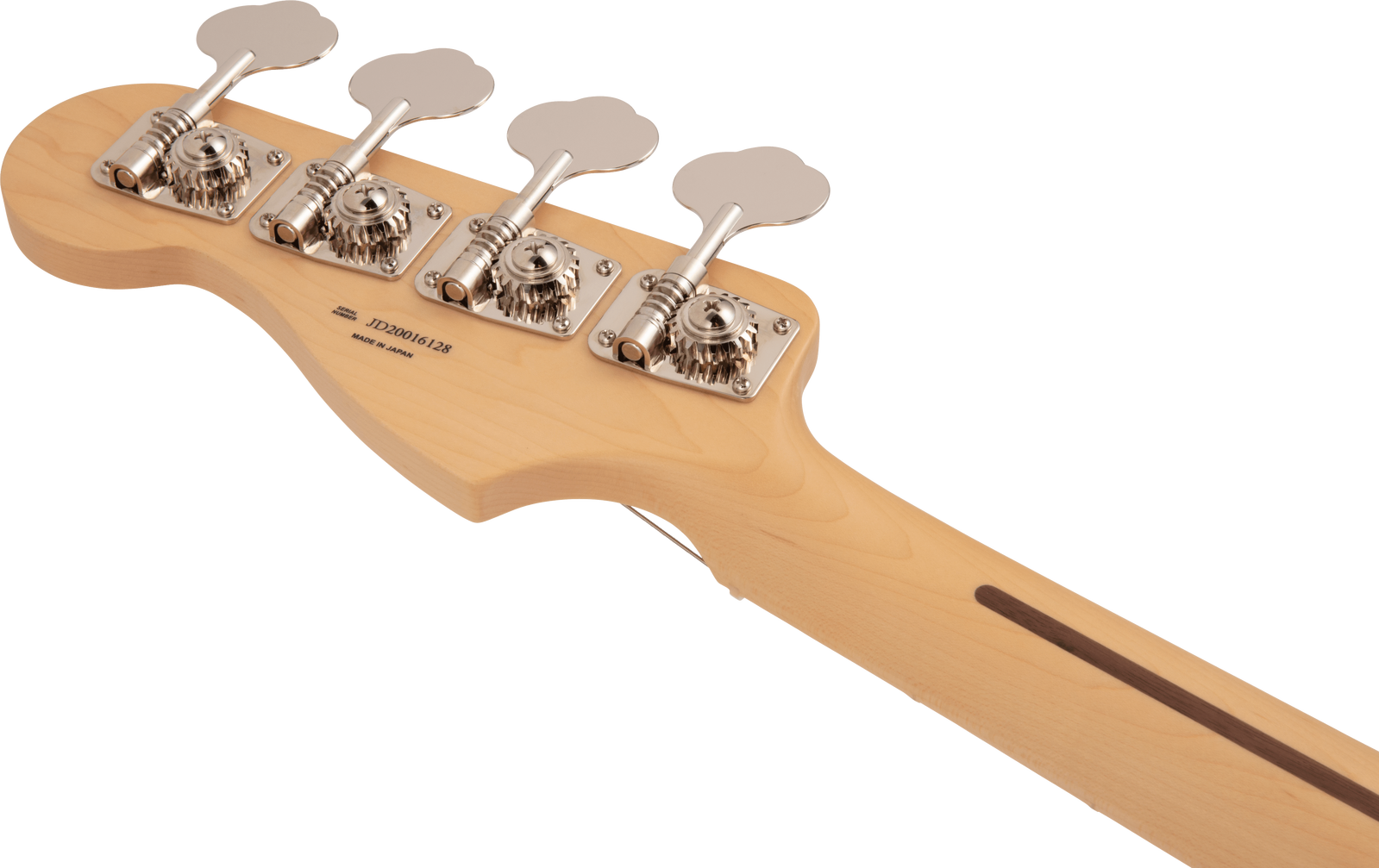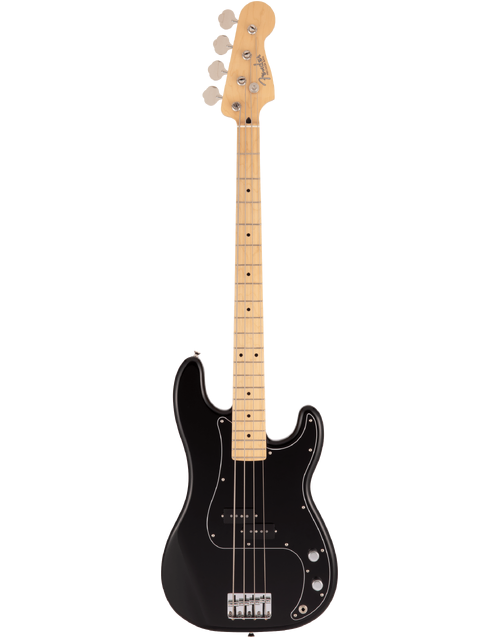 The Fender MIJ Hybrid II P Bass MN, finished in Black, certainly lives up to its name, combining a vintage aesthetic, with modern playability and Japanese craftsmanship for a hybrid that's the best of both worlds. This Hybrid II Precision Bass features an Alder body with Modern C-profile 34" scale Maple neck and fretboard, for modern Precision Bass playability. Orange drop capacitors, and a Hybrid II Custom-Voiced Single Coil Precision Bass pickup, which was designed in concert with both Fender Japan and Fender U.S.A., are optimised for maximum versatility, with a tonal profile that accomodates all genres of music. Vintage-style tuners and a 4-saddle vintage-style bridge ensure rock solid tuning stability.