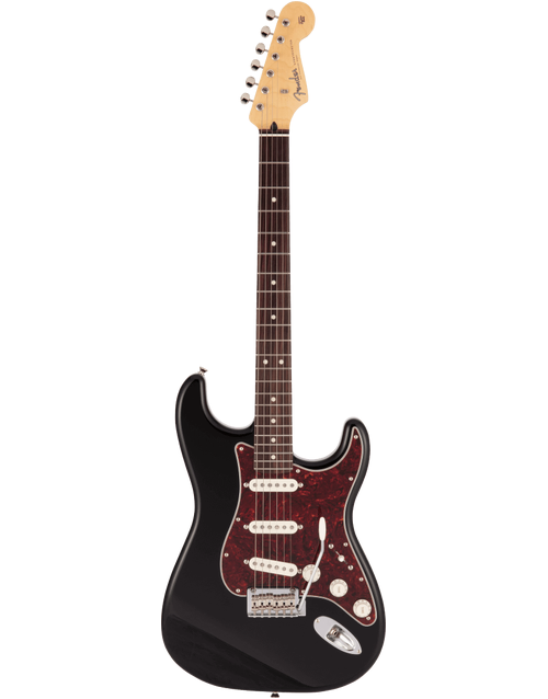 The Fender MIJ Hybrid II Stratocaster RW, finished in Black, certainly lives up to its name, combining a vintage aesthetic, with modern playability and Japanese craftsmanship for a hybrid that's the best of both worlds. This Hybrid II Strat features an Alder body with Modern C-profile 25.5" scale Maple neck and Rosewood fretboard, for modern Strat playability. Orange drop capacitors, and a trio of Hybrid II Custom-Voiced Single Coil Stratocaster pickups, which were designed in concert with both Fender Japan and Fender U.S.A., are optimised for maximum versatility, with a tonal profile that accomdates all genres of music. Vintage-style locking tuners ensure tuning stability, while a 2-point tremolo system with steel saddles services all of your tremolo needs.