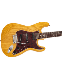 The Fender MIJ Limited Stratocaster Raw Ash RW in Vintage Natural is a refined, limited release Fender Japan model that pairs vintage tone with modern playability. Featuring a lightweight ash body and smooth satin finish, it delivers resonant clarity and comfortable performance. The satin urethane Modern "C" maple neck and rosewood fingerboard offer fast, familiar feel, while 22 medium jumbo frets and vintage-style locking tuners enhance tuning stability. A trio of Fender USA Vintage Stratocaster pickups deliver classic Strat tones with plenty of chime and bite. Includes a gig bag.