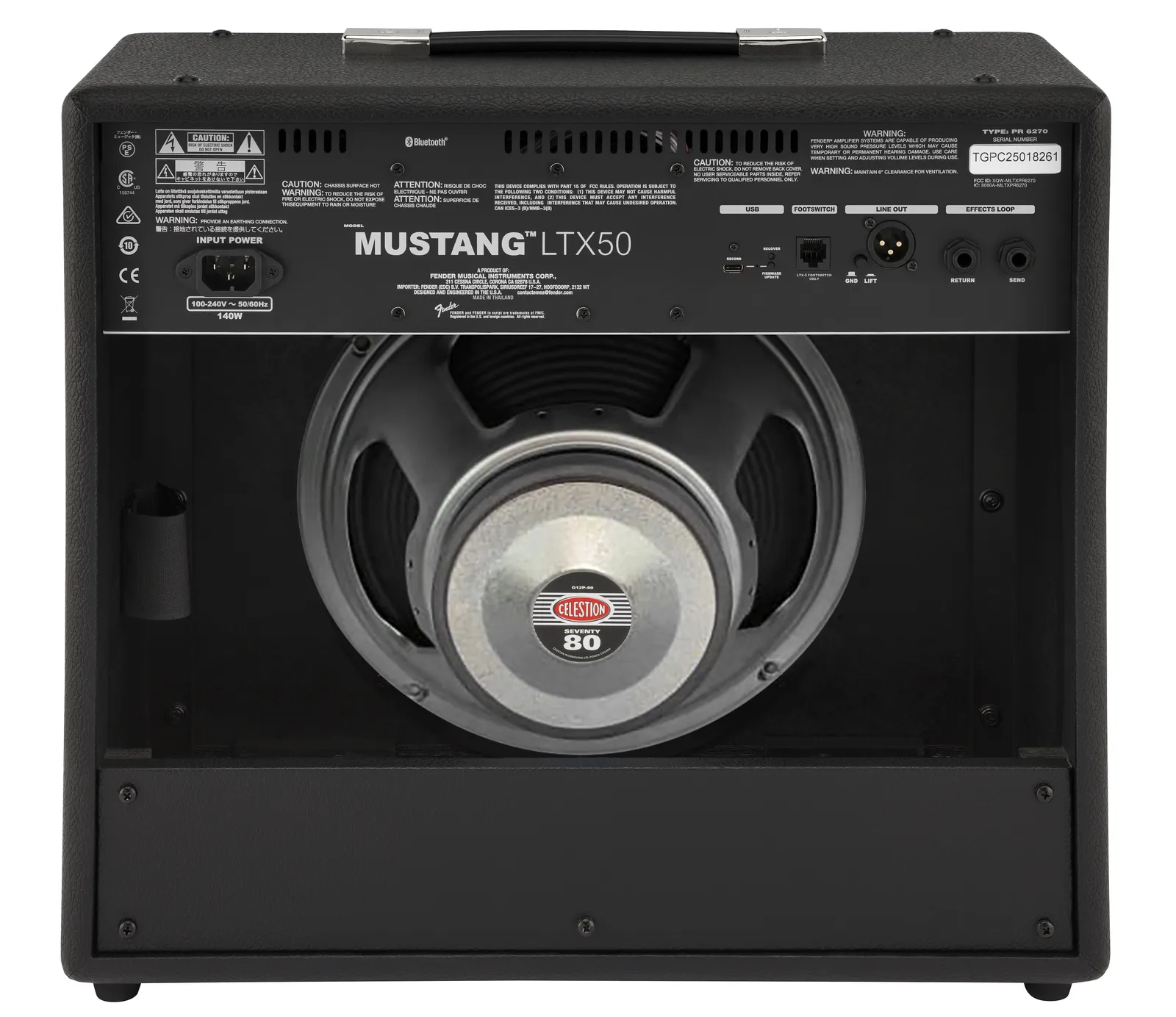 The Fender Mustang LTX50 is a versatile 50-watt digital combo amp packed with modern features for practice, recording, or live performance. With 50 amp and effect models, 100 user presets, a full-colour display, and built-in tuner, the LTX50 puts powerful tone shaping at your fingertips. A 12" Celestion G12P-80 speaker delivers punchy, articulate sound, while Bluetooth and USB connectivity let you stream, record, or edit your tones with the Fender TONE app. It’s also compatible with the optional LTX-5 footswitch for stage control.