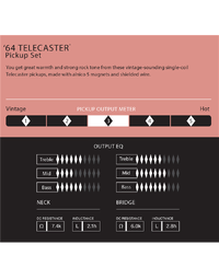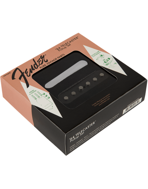 The Fender American Pure Vintage '64 Telecaster Single-Coil Pickup Set features vintage bobbin construction, and genuine original-era cloth wiring, Wound to precise specifications for authentic, traditional Fender tone and performance, this set of vintage-spec early 60's single-coil Telecaster pickups pump out hotter, stronger Tele twang which remains crystal clear, and is versatile enough to handle anything you throw at it.