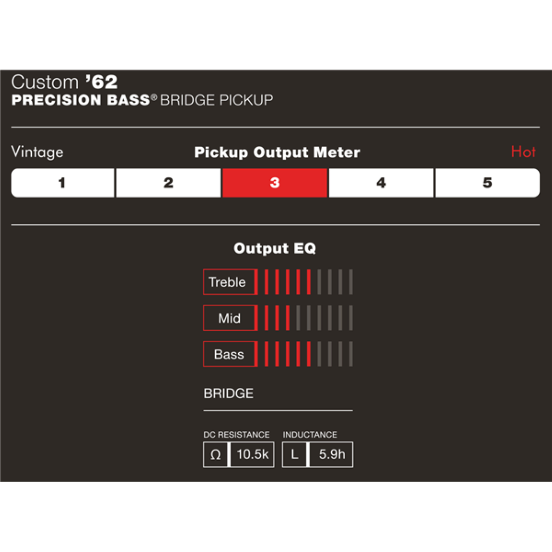 The Fender American Custom Shop '62 Precision Bass Pickup recreates the feel and response of an early sixties P Bass, delivering the thick lows, pronounced midrange punch and articulate top end that define the instrument’s iconic voice. Enamel-coated magnet wire helps produce a warm, rounded character, while Alnico 5 magnets add focus and dynamic snap for confident pick or fingerstyle playing. The flush-mount pole pieces ensure even output across all strings, keeping the tone balanced during aggressive lines or softer passages. With period-correct cloth wire and a fibre bobbin, it stays true to the original build while offering reliable performance for modern players. Installation hardware is included, making it a straightforward upgrade.