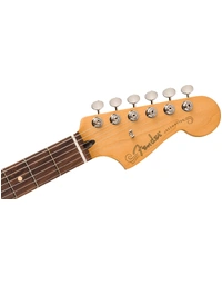 Equipped with Player Series Alnico V single-coil Jazzmaster pickups, this guitar delivers a wide spectrum of tones - from sparkling highs to tight lows - ideal for any musical genre. The 3-way toggle switch allows seamless transition between pickup configurations, offering versatility from warm, mellow tones to crisp, cutting leads. The 6-saddle Jazzmaster bridge features upgraded Mustang saddles and a vintage-style floating tremolo, providing smooth vibrato and precise tuning stability.