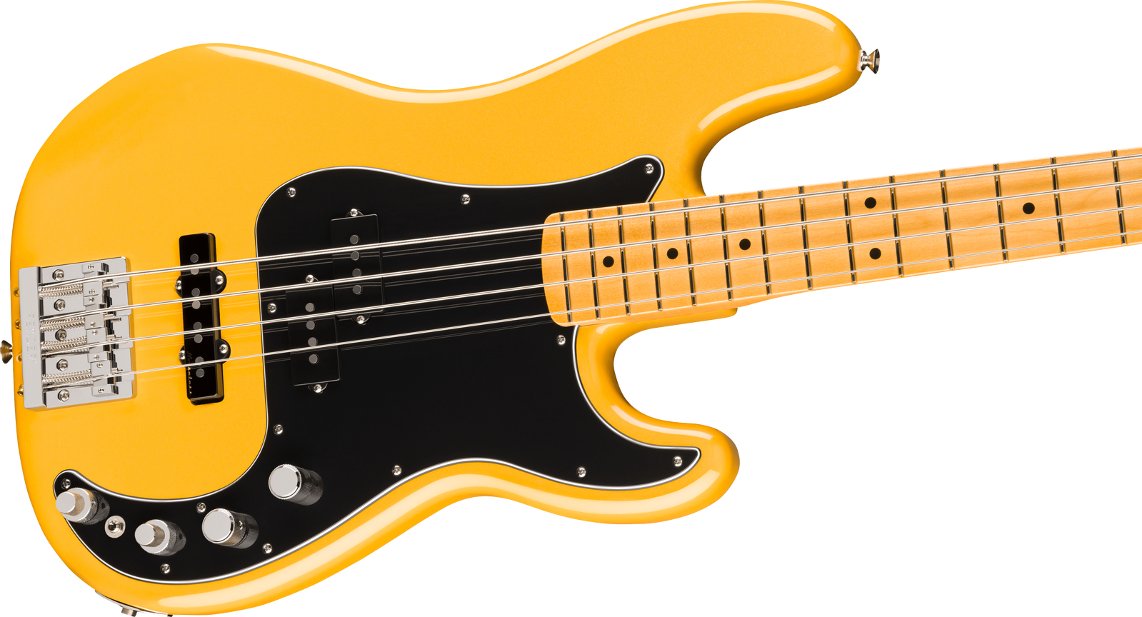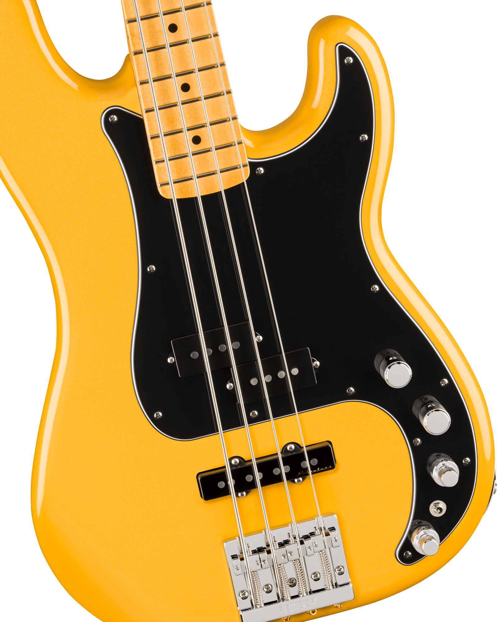 The Fender Player II Modified Active Precision Bass MN in Sunshine Yellow delivers classic Fender tone with the versatility and performance modern bassists demand. Its alder body offers punch and resonance, while the Modern "C"-profile maple neck with rolled edges and satin finish ensures effortless playability. A Player II Modified Precision Bass pickup in the neck and a Noiseless Jazz Bass pickup in the bridge deliver a powerful, hum-free tonal range. The active preamp features a 3-band EQ and an active/passive switch, giving you precise control over your sound. Tuning stability is rock solid thanks to the HiMass 4-saddle bridge, tapered-shaft tuners, and TUSQ nut.