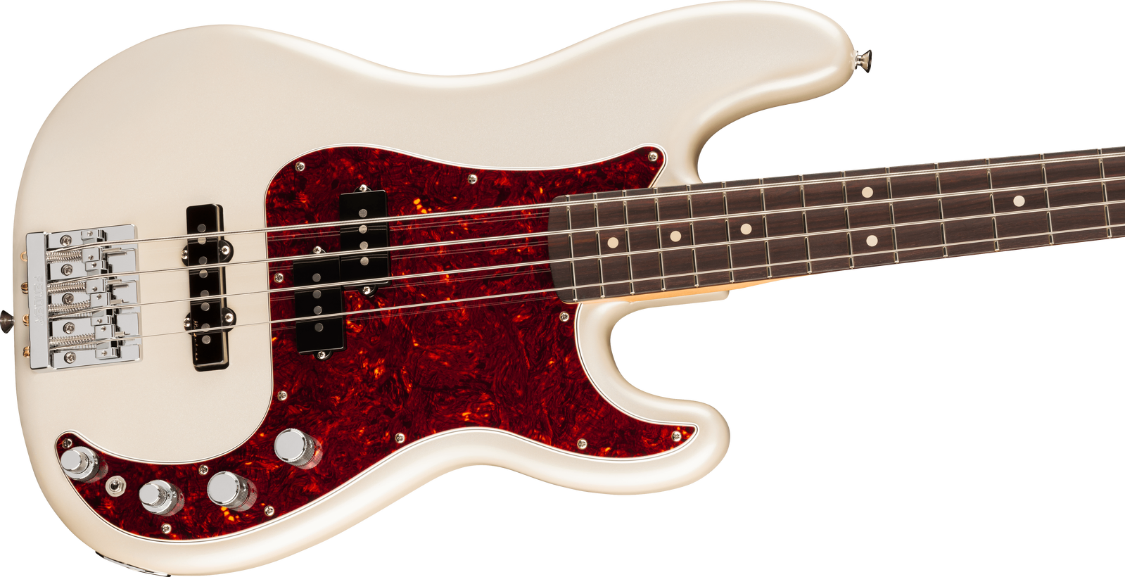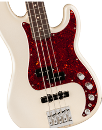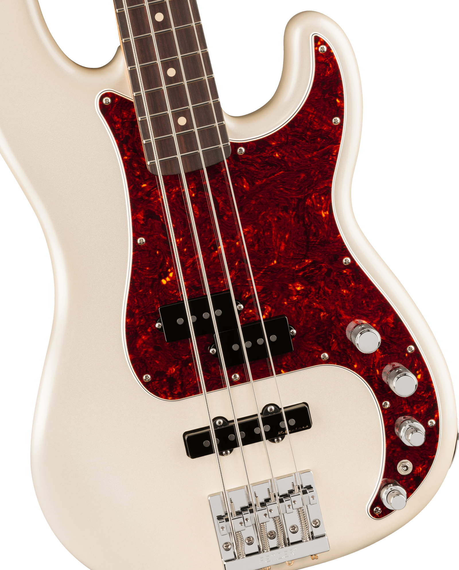 The Fender Player II Modified Active Precision Bass RW in Olympic Pearl brings modern power and flexibility to the iconic P Bass platform. Its alder body offers classic Fender resonance, while the Modern "C"-profile neck with a satin finish, rolled edges, and a 9.5"-radius rosewood fingerboard ensures smooth, comfortable playability. Equipped with a Player II Modified Precision Bass neck pickup and a Noiseless Jazz Bass bridge pickup, this bass delivers punchy lows and articulate highs without unwanted noise. The all-new active preamp includes active/passive switching and a 3-band EQ for precise tonal control. With a HiMass 4-saddle bridge, tapered-shaft tuners, and TUSQ nut, tuning and sustain are rock-solid across any style.