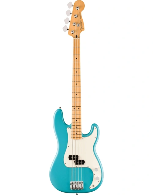 Unleash your musical potential with the Fender Player II Precision Bass MN in Aquatone Blue, a masterpiece that blends iconic Fender aesthetics with modern enhancements. This bass guitar is engineered to meet the demands of contemporary players, featuring a contoured alder body that delivers the quintessential Fender tone. Its Aquatone Blue finish adds a splash of unique elegance, making it a standout on any stage. The Modern C-profile neck with a silky satin urethane finish on the back offers exceptional comfort and speed, while the 9.5"-radius maple fingerboard with rolled edges and 20 medium jumbo frets ensures smooth playability. Equipped with a Player Series Alnico V Split-Coil P Bass pickup, this instrument produces sweet highs, rich mids, and thunderous lows, perfect for any genre. The adjustable 4-saddle bridge with single-groove steel saddles and open-gear tuners provide rock-solid tuning stability and precise intonation.