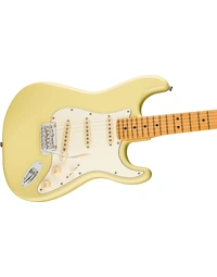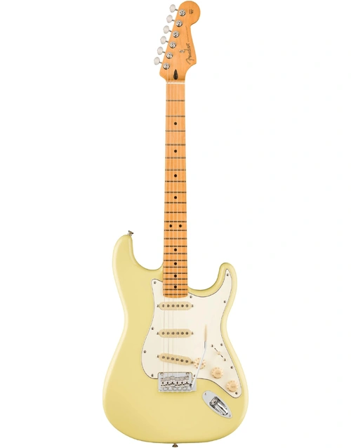 Step into the spotlight with the Fender Player II Stratocaster in Hialeah Yellow, a captivating blend of vintage Fender style and modern performance upgrades. This guitar features a contoured alder body in a vibrant Hialeah Yellow finish, offering both classic aesthetics and exceptional comfort. The Modern C neck profile, combined with a 9.5"-radius maple fingerboard and rolled edges, ensures smooth and fast playability for effortless performance. Outfitted with Player Series Alnico V Single-Coil Strat pickups, this Stratocaster provides a wide range of tones, from bright, crystalline highs to warm, musical mids and tight lows, perfect for any genre. The 5-way blade switch allows for easy tonal adjustments, while the 2-point synchronized tremolo and ClassicGear tuners ensure precise tuning stability and expressive vibrato. Whether on stage or in the studio, the Player II Stratocaster delivers the iconic Fender sound and feel that guitarists crave.