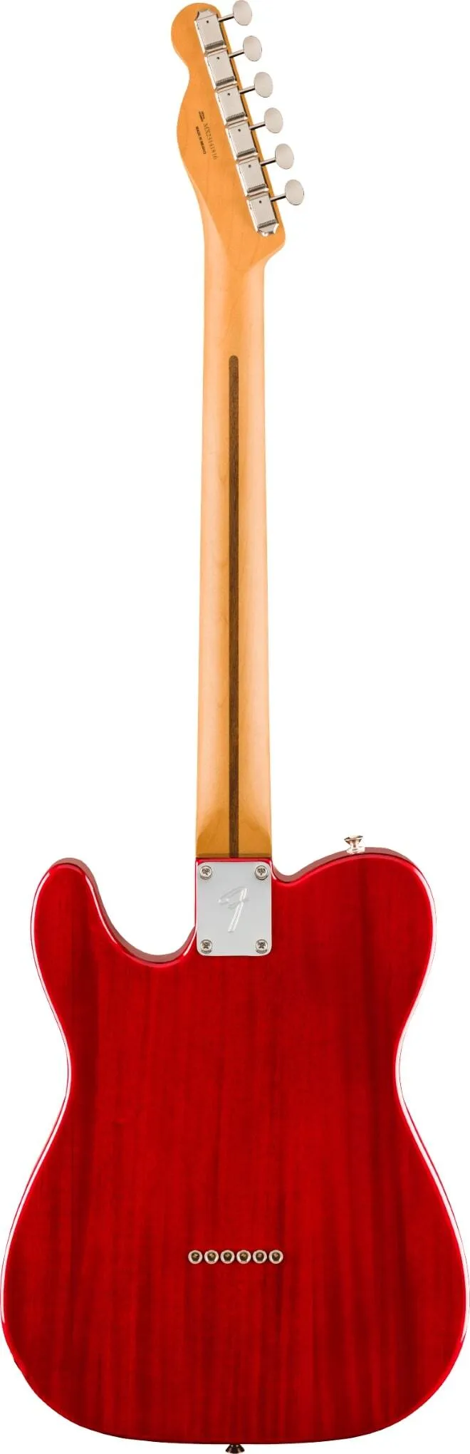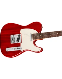 Experience the timeless allure and modern flair of the Fender Player II Telecaster in Transparent Cherry. This guitar combines a classic look with cutting-edge features for today's musicians. Crafted with a chambered mahogany body, it offers a rich, warm tone that resonates beautifully. The Modern C neck profile with a satin urethane finish ensures a smooth playing experience, while the 9.5" radius rosewood fingerboard with rolled edges provides comfort and ease of play. Equipped with Player Series Alnico V Single-Coil pickups, it delivers crisp highs, defined mids, and robust lows. A 6-saddle string-through-body bridge with block steel saddles and ClassicGear tuners ensure stability and precise tuning.