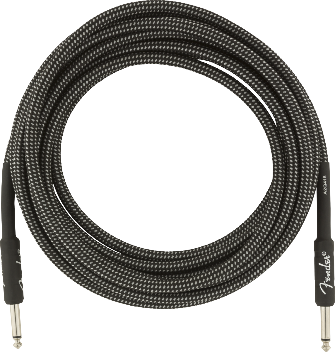 The Fender Professional Instrument Cable 15' Gray Tweed is designed for dependable performance on stage and in the studio. Built with a thick 8 mm outer jacket and high-quality components, it delivers clear signal transmission while standing up to the demands of regular gigging and rehearsal use.
