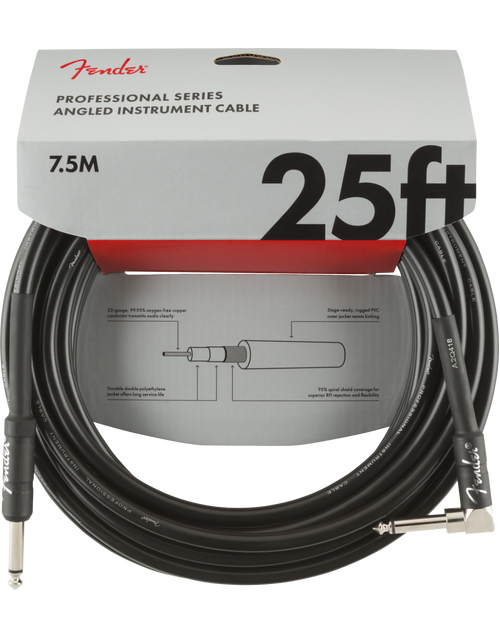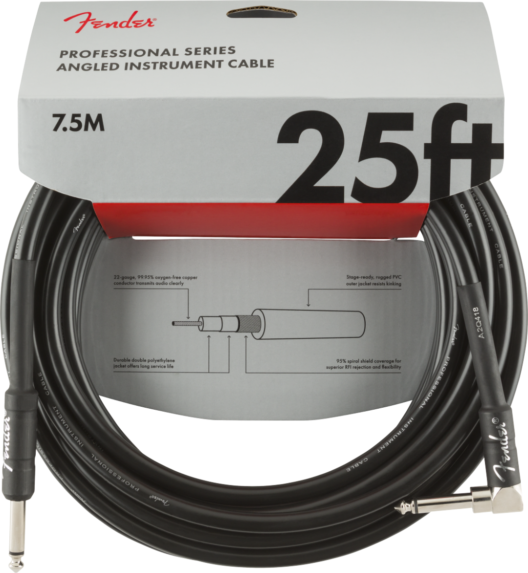 Road-reliable and flexible, Fender Professional Series cables boast a thick gauge with high-quality components that transparently retain your tone without getting in the way. Sporting quiet and resilient spiral shielding, these cables are engineered to avoid twisting, kinking and any "physical memory." At 25 feet (7.5m), this cable is a great length to allow you to Plug In and Play with peace of mind and creative confidence, on stage or in the studio.