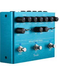 Designed by Fender's in-house team of experts, the Reflecting Pool Delay/Reverb is an all-original Fender circuit. The chassis is crafted from lightweight, durable anodized aluminium, and the Amp Jewel LED gives your pedalboard the classic Fender look. The switchable LED-backlit knobs show your control settings on a dark stage at a glance.